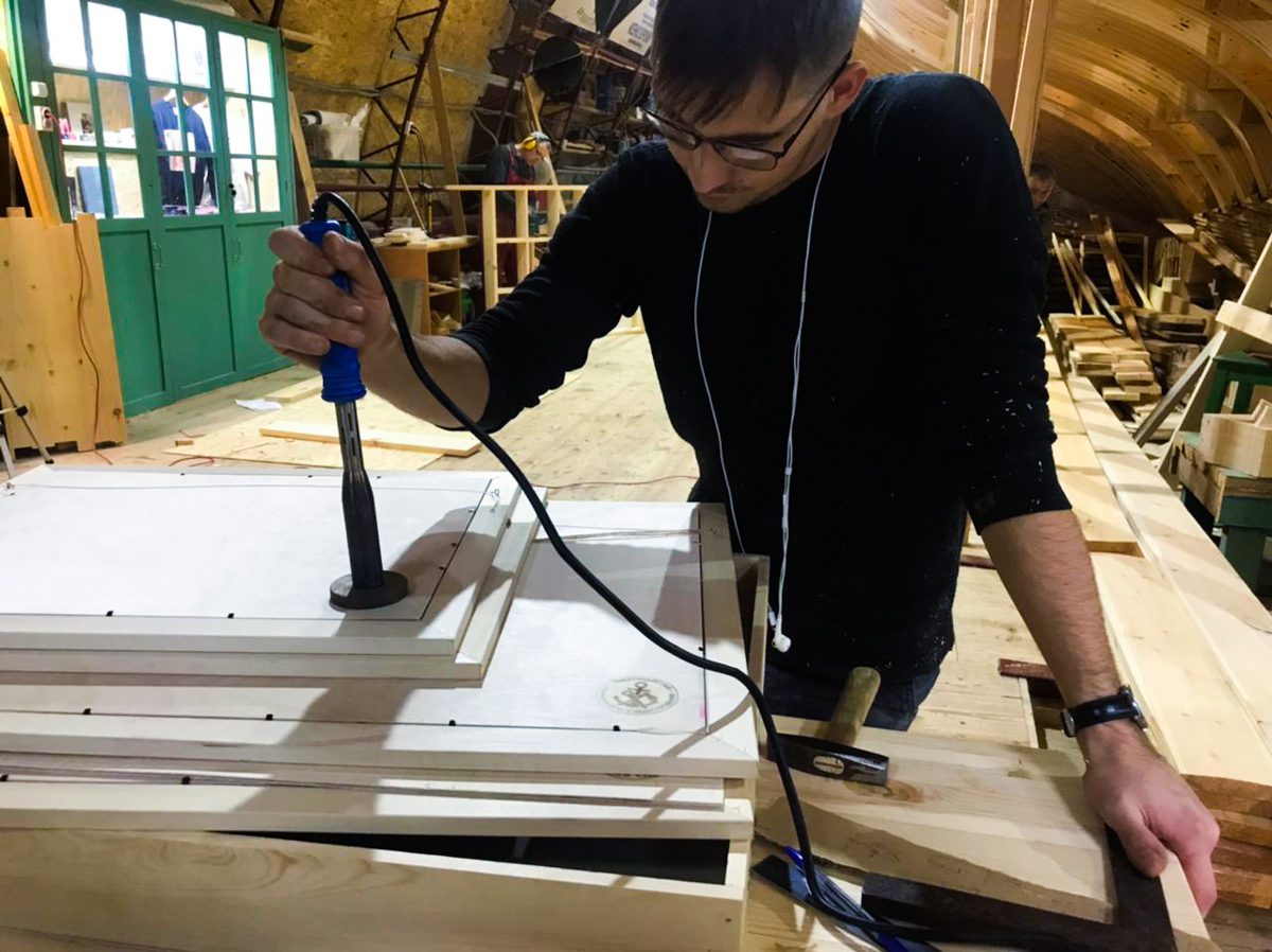 Открытие выставки постеров, изготовленных дизайнерами проекта на основе чертежей Соломбальской судоверфи