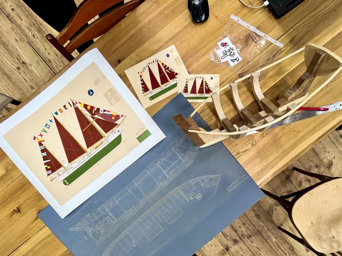 Оцифровка предоставленных коллегами из Севмормузея чертежей шхуны «Запад» и изготовление, пожалуй, самого главного постера этого сезона – цветного «Запада» с флагами расцвечивания (автор идеи – Евгений Шкаруба, художник – Катя Суворова).