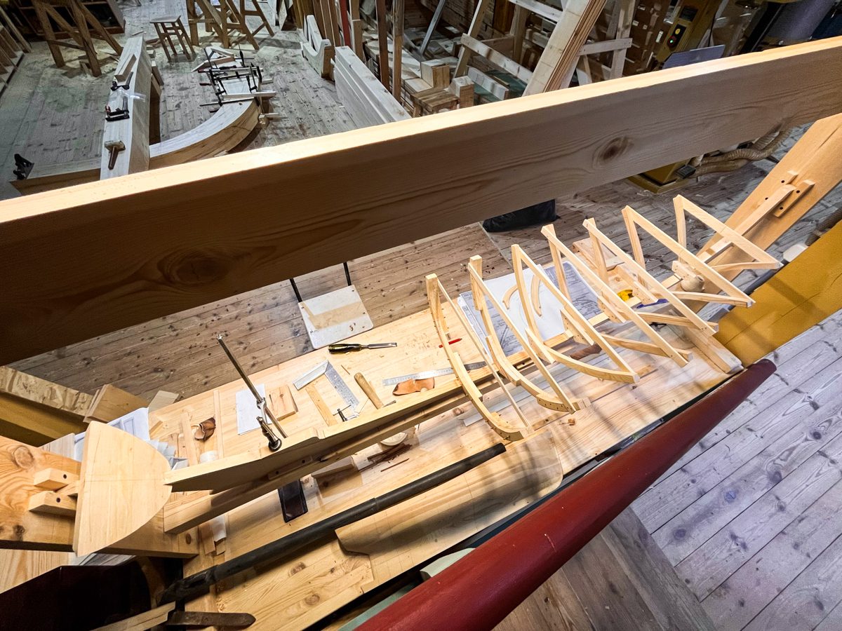 Продолжаем активно принимать на верфи экскурсии. Рассказываем о верфи и её проектах, показываем части будущей экспозиции отчетной выставки Лаборатории деревянного судостроения: чертежи, строящиеся по ним макеты судов, 3Д-модели и реальные традиционные лодки Русского Севера.