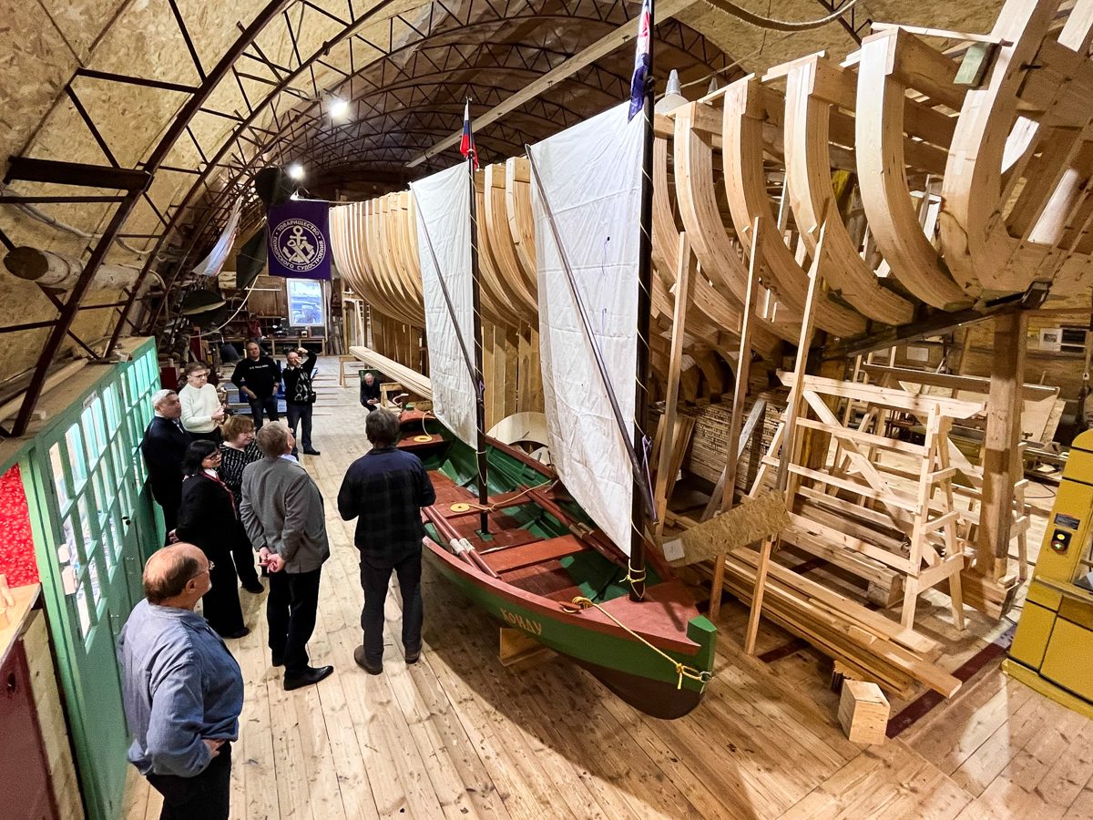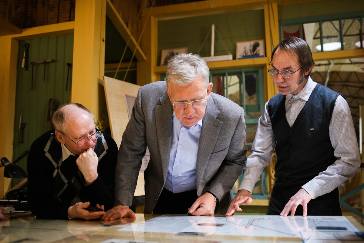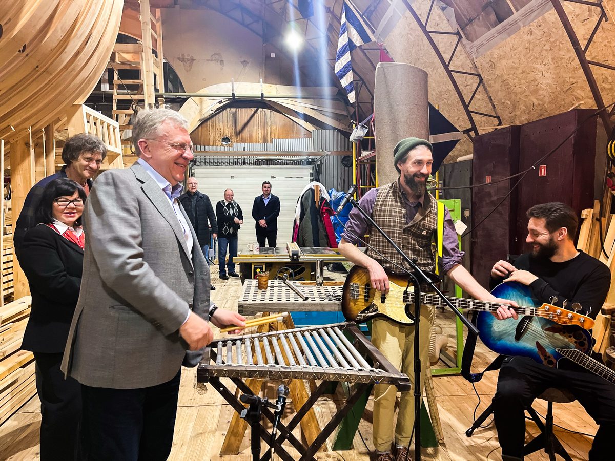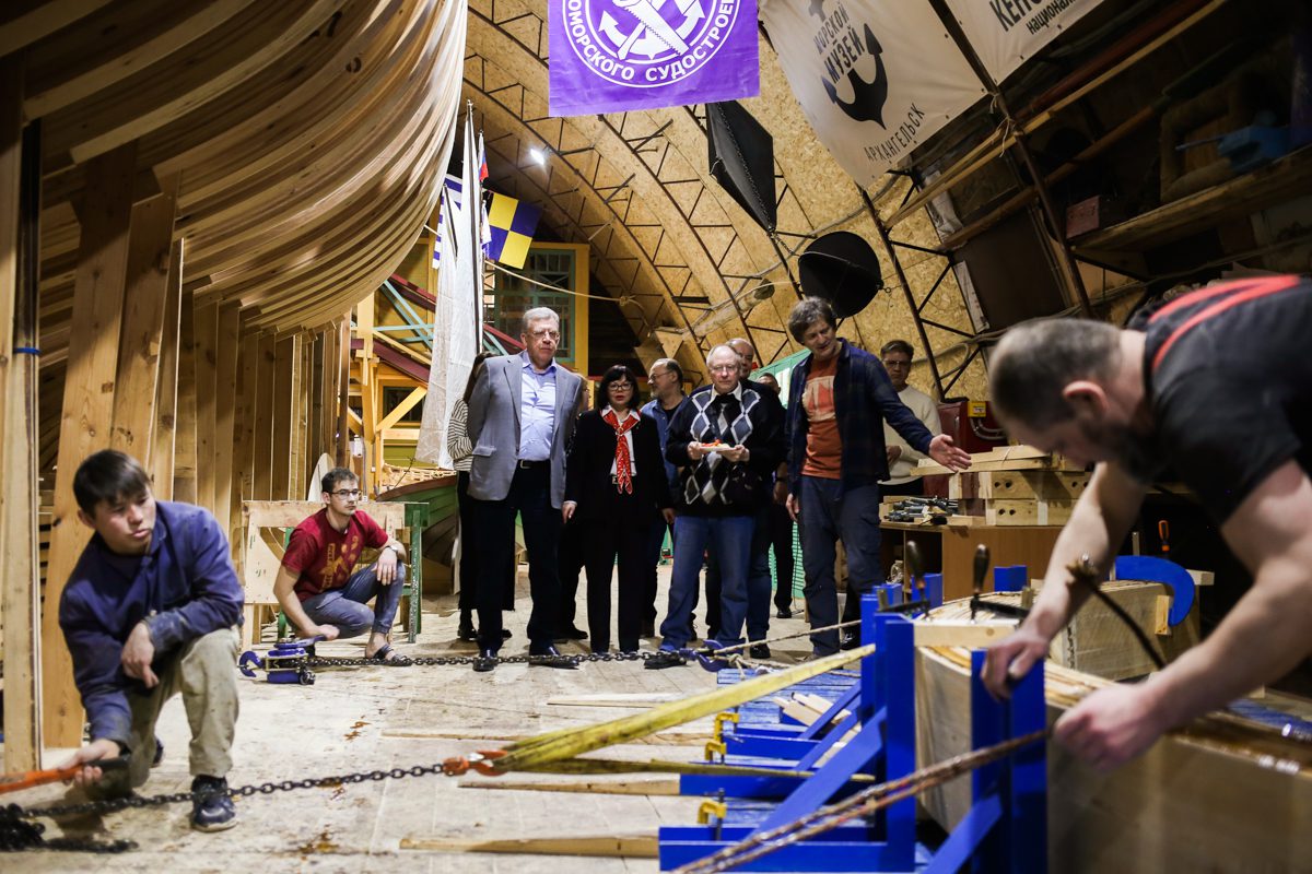 Встреча получилась душевной и продуктивной: Алексей Леонидович вместе с ректором университета Еленой Кудряшовой лично поучаствовал в заклейке форштевня «Поморской шхуны», посмотрел на регатные карбаса Товарищества и народные лодки из коллекции верфи, побывал возле павильона «Оверкиль», познакомился с проектами «Заветный флот», «Цифровой архив Соломбальской судоверфи и «Лаборатория деревянного судостроения», попробовал традиционного верфяного палтуса с шаньгами и даже сыграл небольшой джем-сейшен с музыкантами нашей верфи.