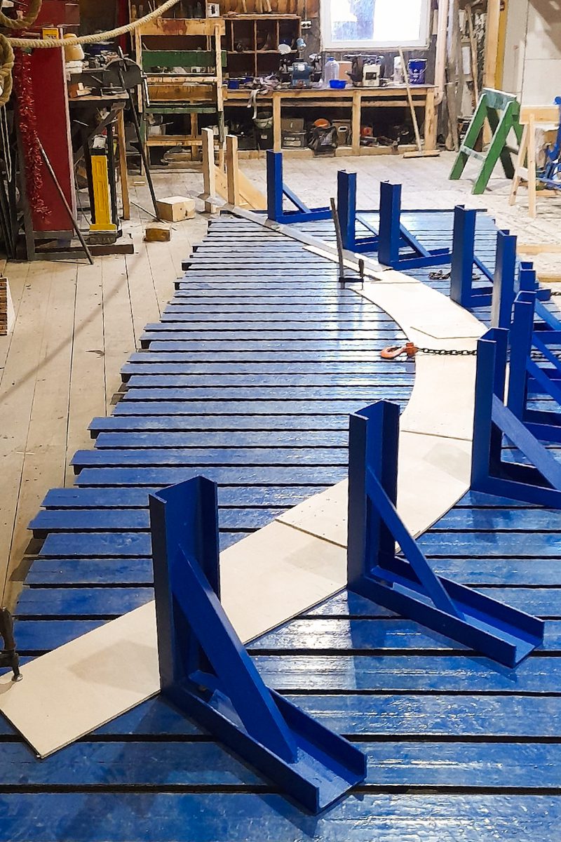 Крутим гибочный стол, ставим супер-упоры, и примеряемся к эпической выклейке гигантского форштевня.