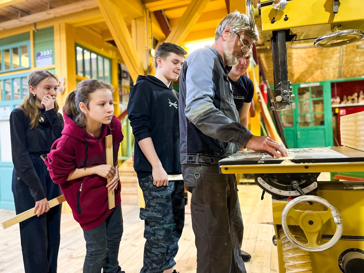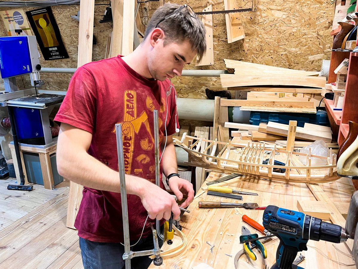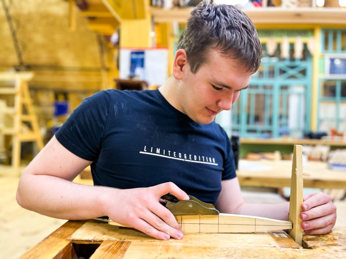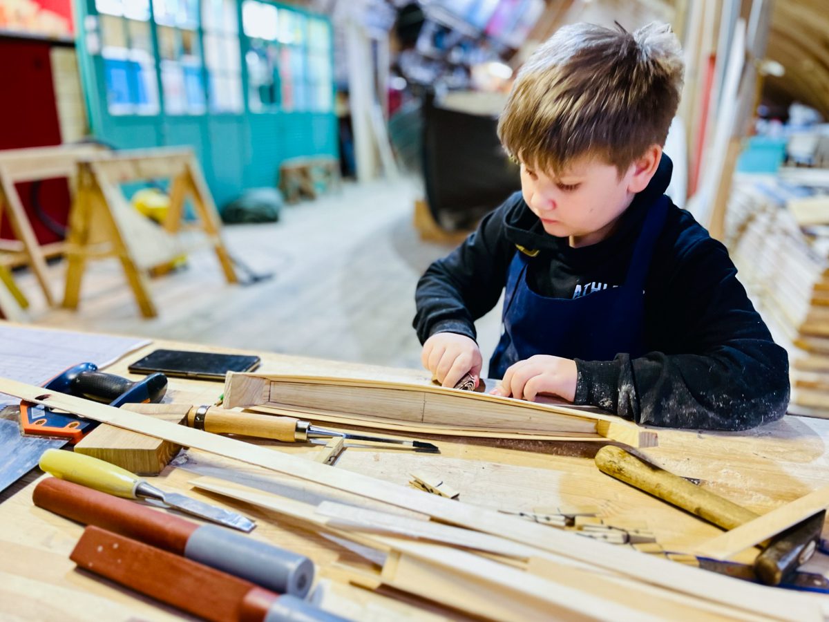 Кроме того, на верфи побывали четверо школьников-победителей и призеров Всероссийской олимпиады по судостроению. Ребята приехали в Архангельск из города Мирный вместе с руководителем соцпроекта «Взгляд в будущее». За неделю под руководством нашего столяра Игоря Козьмина они смогли построить несколько разных моделей: парусную, моторную и гребную лодки на основе зырянки из коллекции верфи.