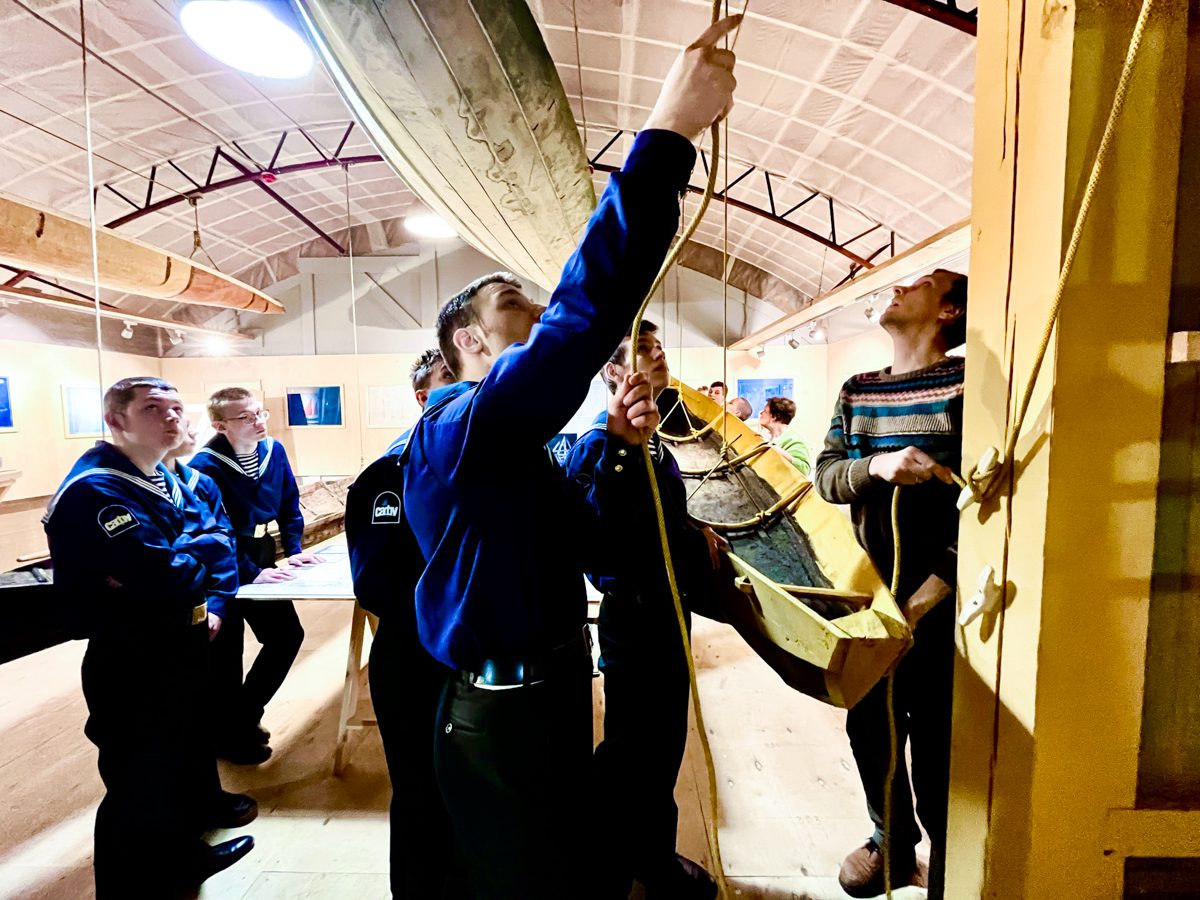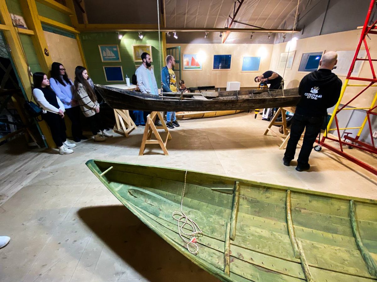 Одной из таких групп стали студенты первого курса Высшей школы рыболовства и морских технологий САФУ. Перед визитом на верфь они сами изготовили модель лодки-долбленки из осины, пользуясь доступной литературой по судостроению. Реюята ходили в лес, искали подходящий материал, пилили, сушили, заливали его кипятком, снова пилили, долбили, строгали и наконец, пришли к нам посмотреть на оригинальный экземпляр этого традиционного судна.