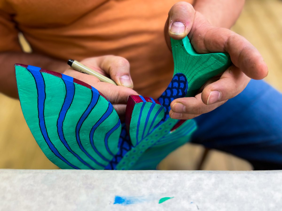В марте наша сувенирная линейка пополнилась новыми экземплярами: расписными птицами, рыбами и животными, изготовленными архитектором Александром Антоновым (дизайн — Екатерина Антонова) из торцевых обрезков, остающихся на верфи в ходе строительства «Поморской шхуны». Таким образом, мы можем сказать, что наши сувениры уникальны дважды: во-первых, как предметы авторской ручной работы, а во-вторых, как элемент настоящего судна. Каждый из этих предметов – это не просто интерьерное украшение, но и часть шпангоута, флора или штевня «Поморской шхуны», а значит несет в себе часть морской культуры.