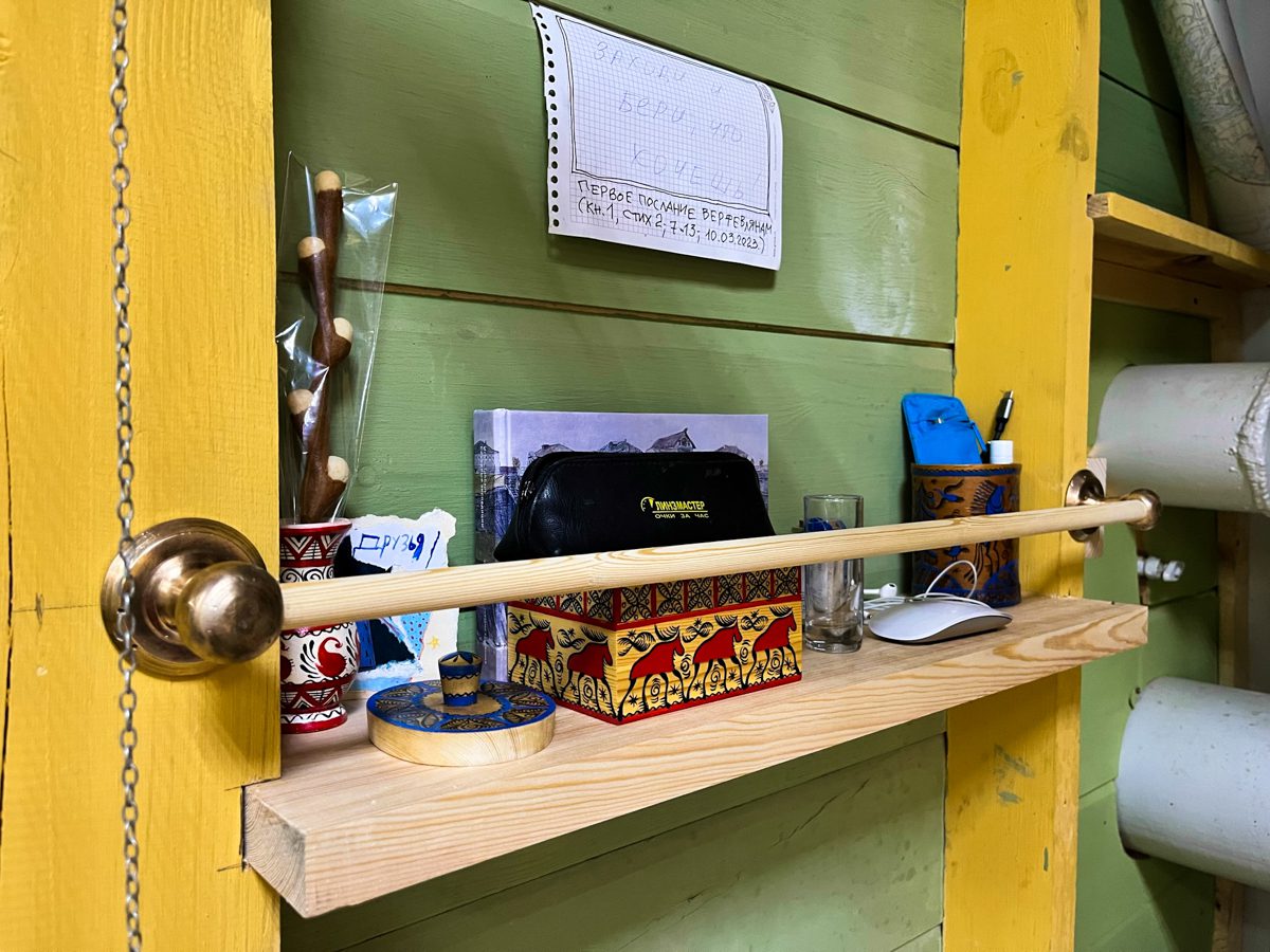 Антонов продолжает вить гнездо на кухне. Что ни день, то новая полочка под рукой.