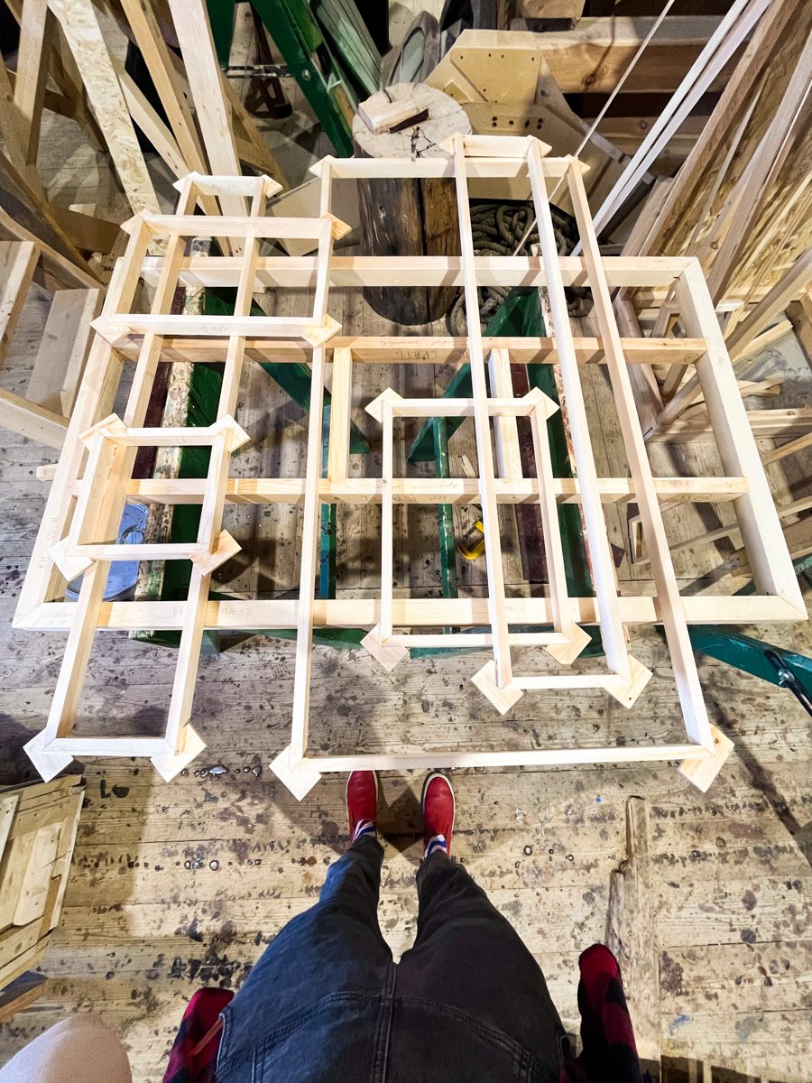 Катя создает столярные вариации на тему Мондриана.