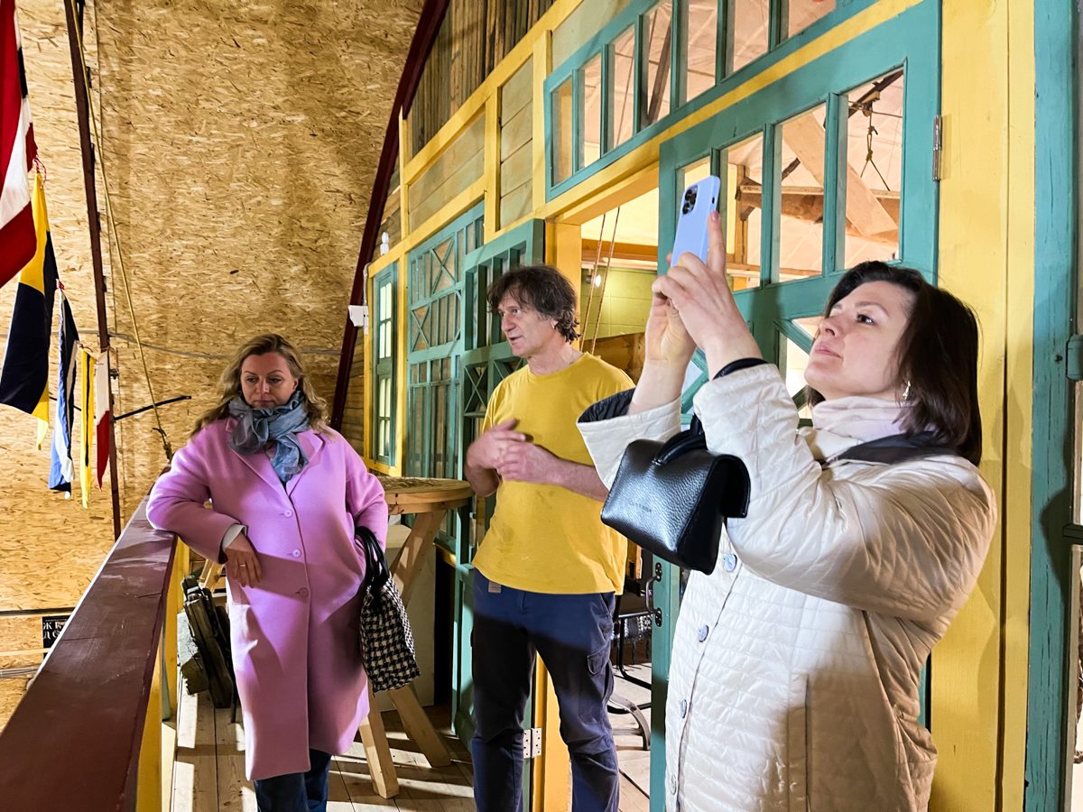 Женя ведет экскурсии – для директора Музея архитектуры имени А.В. Щусева Натальи Шашковой и директора Музея МХАТа Софьи Грачевой, а еще для всей администрации Ломоносовского округа Архангельска.