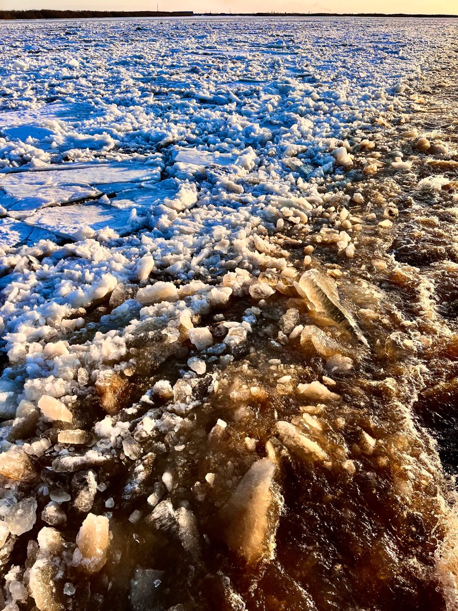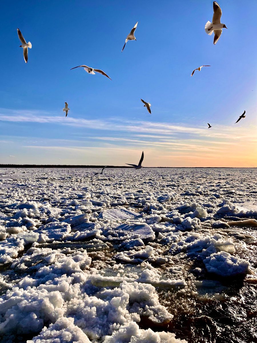 Тем временем к городу А. приближается ледоход. На острова запустили буксирную переправу. Можно проплыть на каком-нибудь «Искандере» среди шуршащей шуги, звонких маленьких льдинок, раскалывающихся больших льдин и загорающих на них тюленей в лучах закатного солнца, подышать воздухом, послушать крики только-только вернувшихся чаек и признать, что полугодовая зима у нас на Севере, наконец, закончилась.
