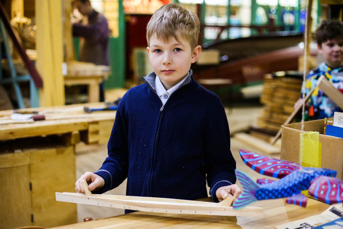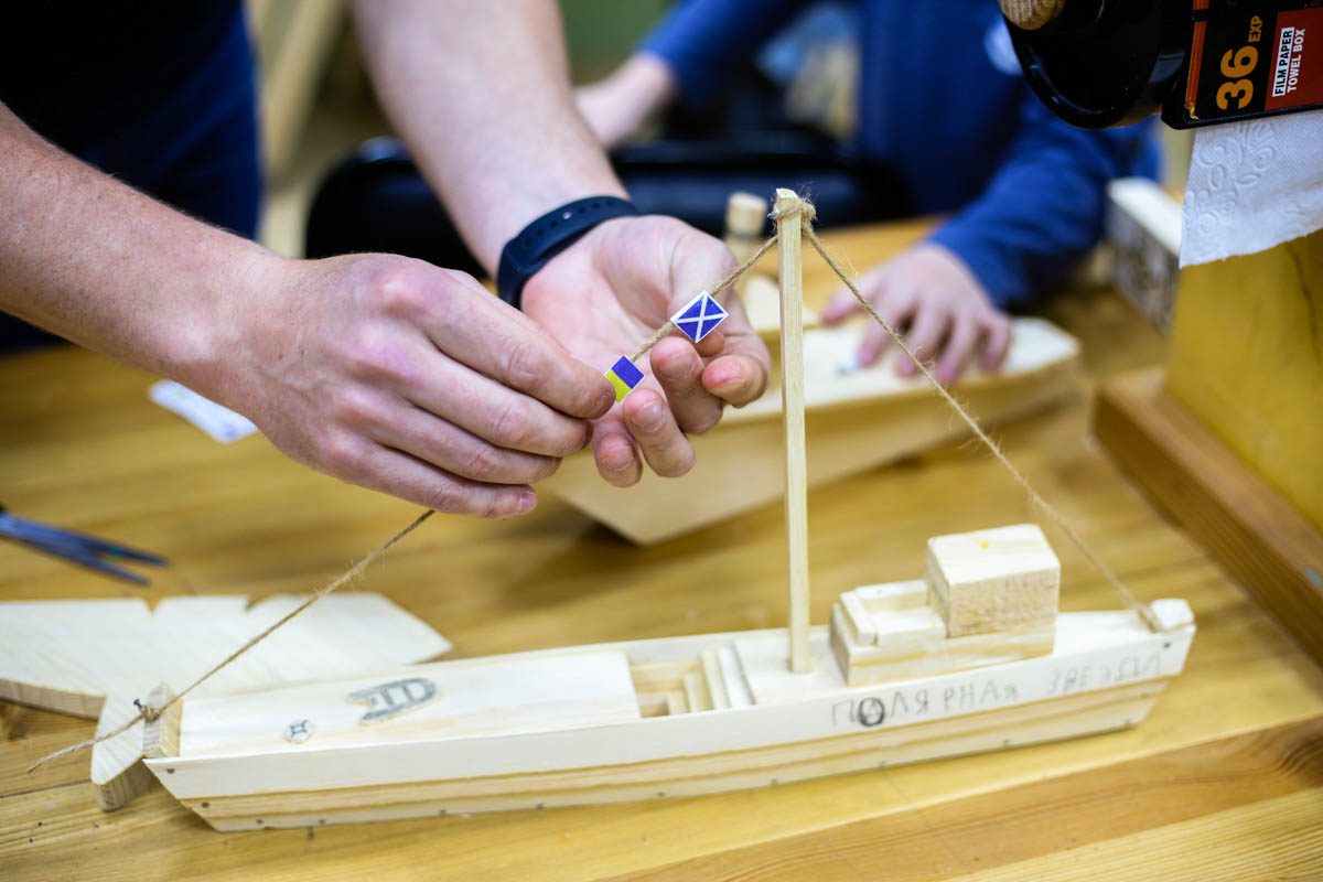 Последнее воскресенье апреля – наша Школа судостроения выходного дня уходит на каникулы до осени. Учебный год завершили вернисажем поделок, чаем, морскими играми и покраской весел регатных карбасов.