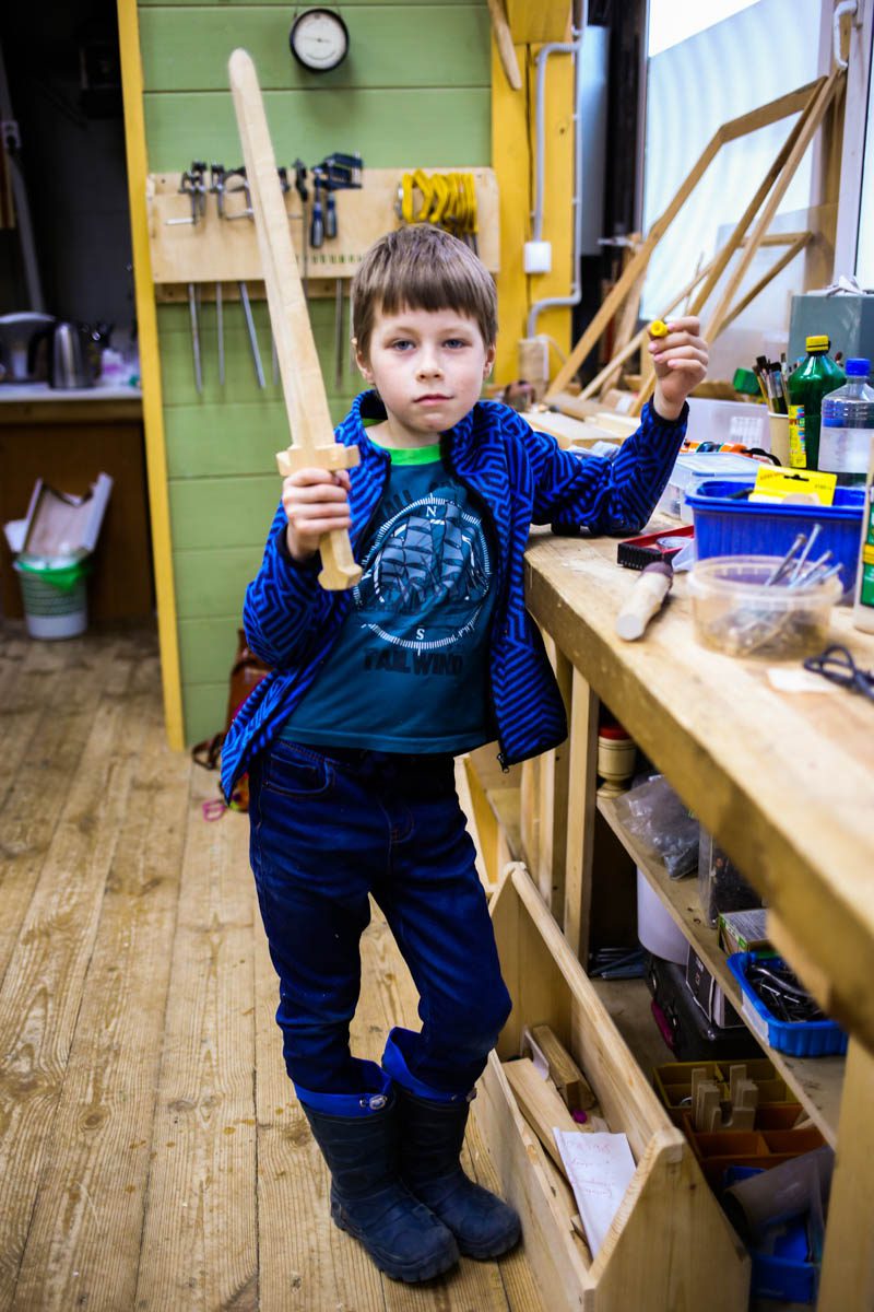 Смотрите, сколько всего ребята сделали на верфи с ноября: целая флотилия лодок самого разного рода – от берестянки и зырянки до крейсера и парохода; ящики для столярного инструмента, табуретки, целый арсенал деревянных мечей и множество игрушек по мелочи.