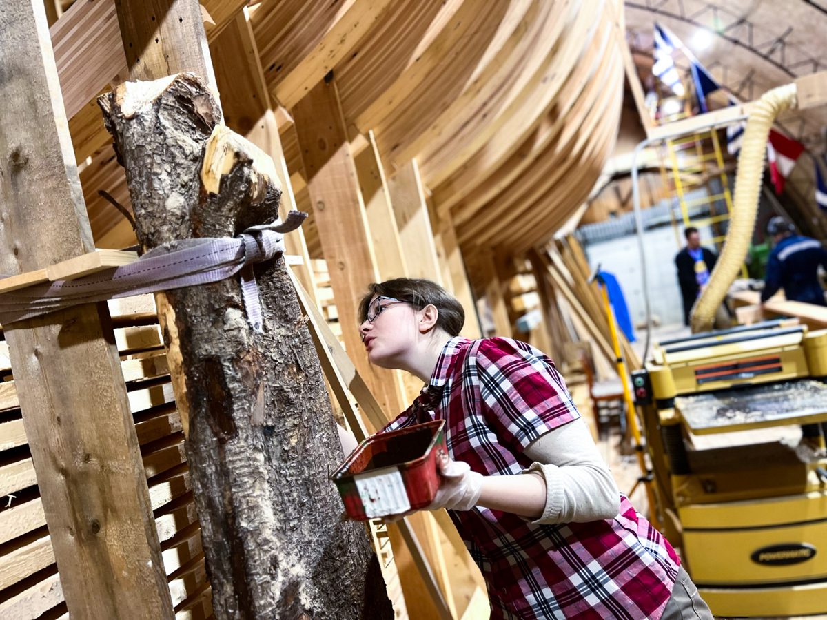 Торцы спиленных сучков в части штевня законсеривировали, чтобы замедлить процесс испарения влаги и предотвратить появление трещин.