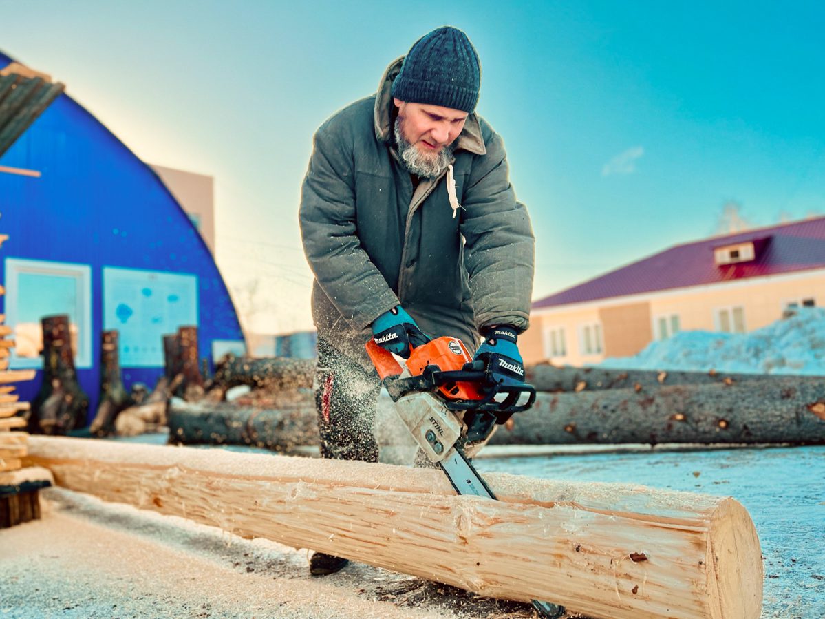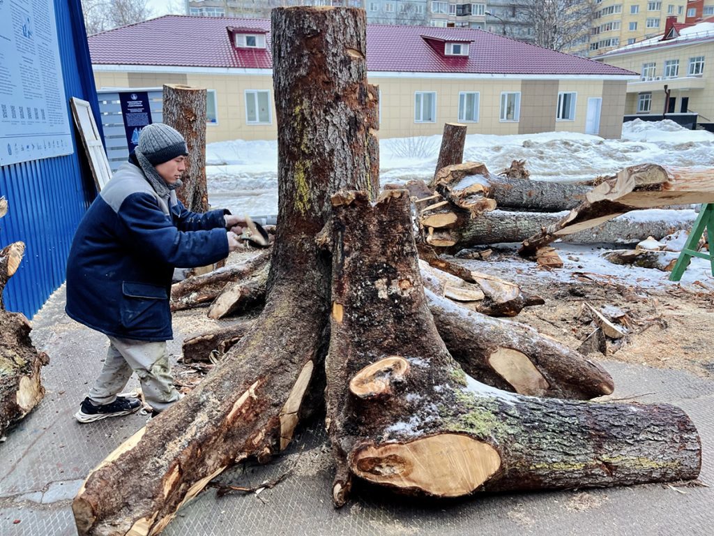 К середине марта начали подготовку материала к строительству: «раздевать» или «окаривать» (то есть, очищать от коры) бревна и кокоры.