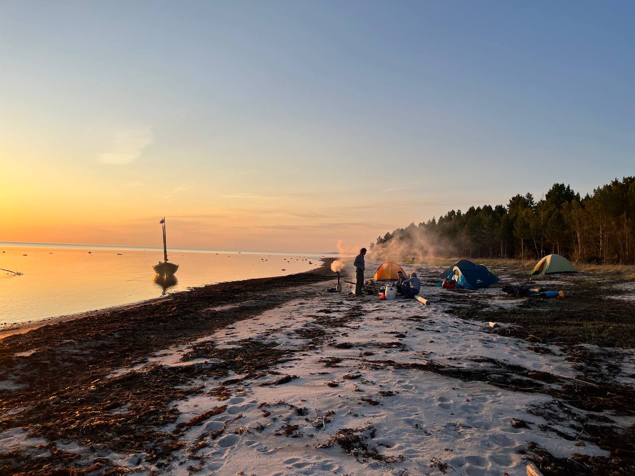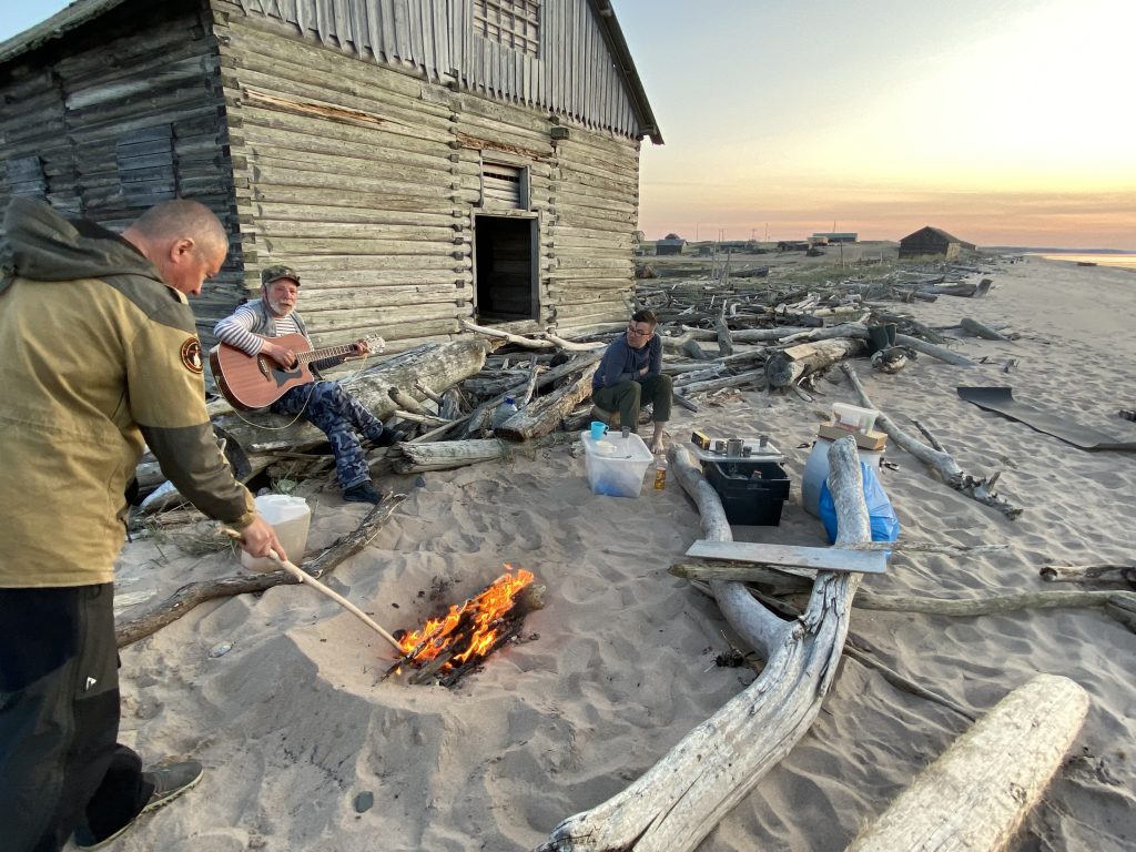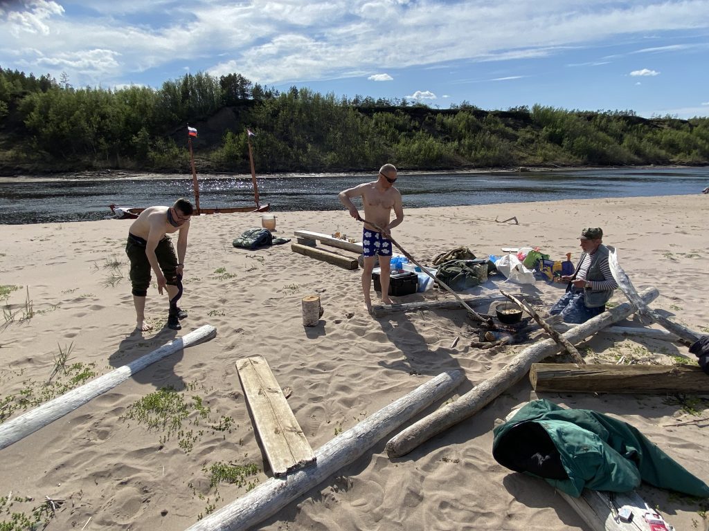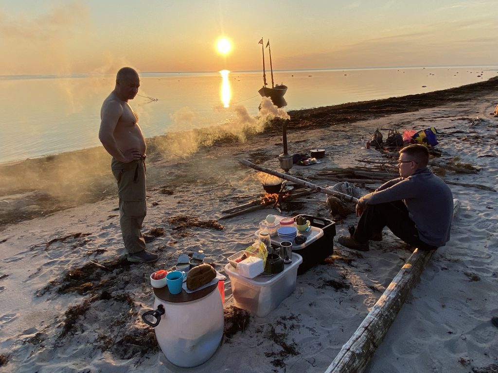 Приехали Александр Горожанцев и Костантантин Аллояров. Красим весла, руль. Любуемся на остров. Гуляем.