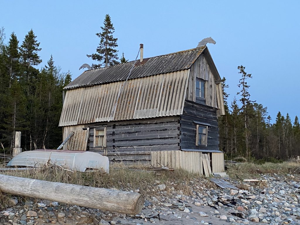 1000, вывели «Вашку» через литораль на глубину. Берешь лодочку за якорный конец поближе к рыму и ведёшь ее, как лошадь, купаться. Осторожно пробирались между камней, которые насыпал здесь ледник. Хотя карбас стоит на отводнице (такая снасть, которой можно оттянуть лодку подальше на глубину прямо с берега), всё равно, того и гляди обсохнешь во время отлива.