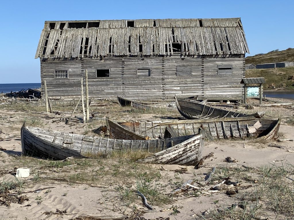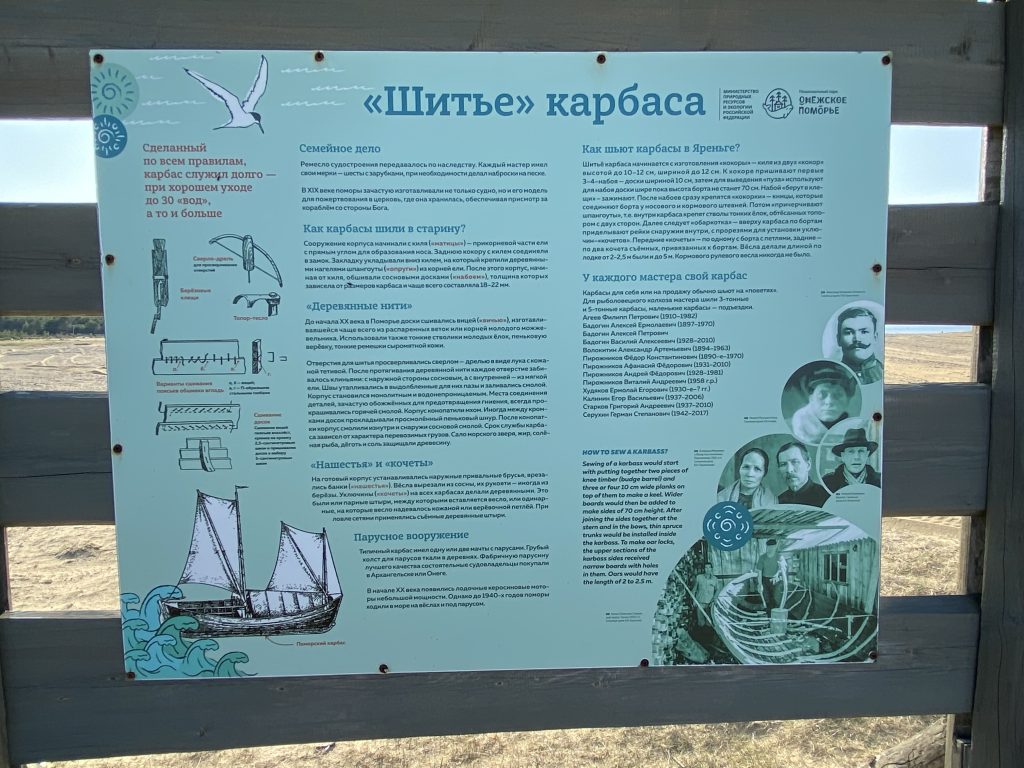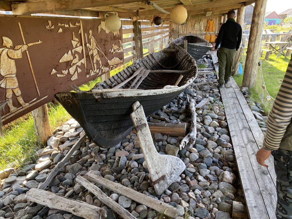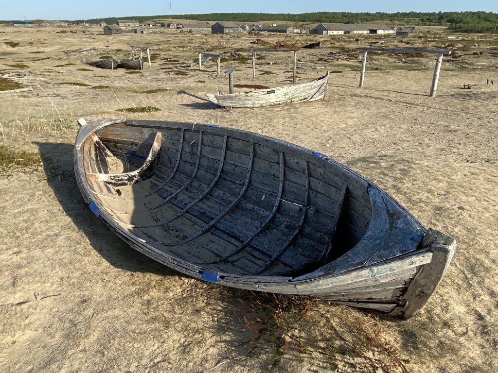 В 1710 были уже в Яреньге. Встали, как обычно, напротив колхозного амбара. Он еще держится, но уже весь в прорехах. На кладбище карбасов без перемен, только поставили новые таблички.