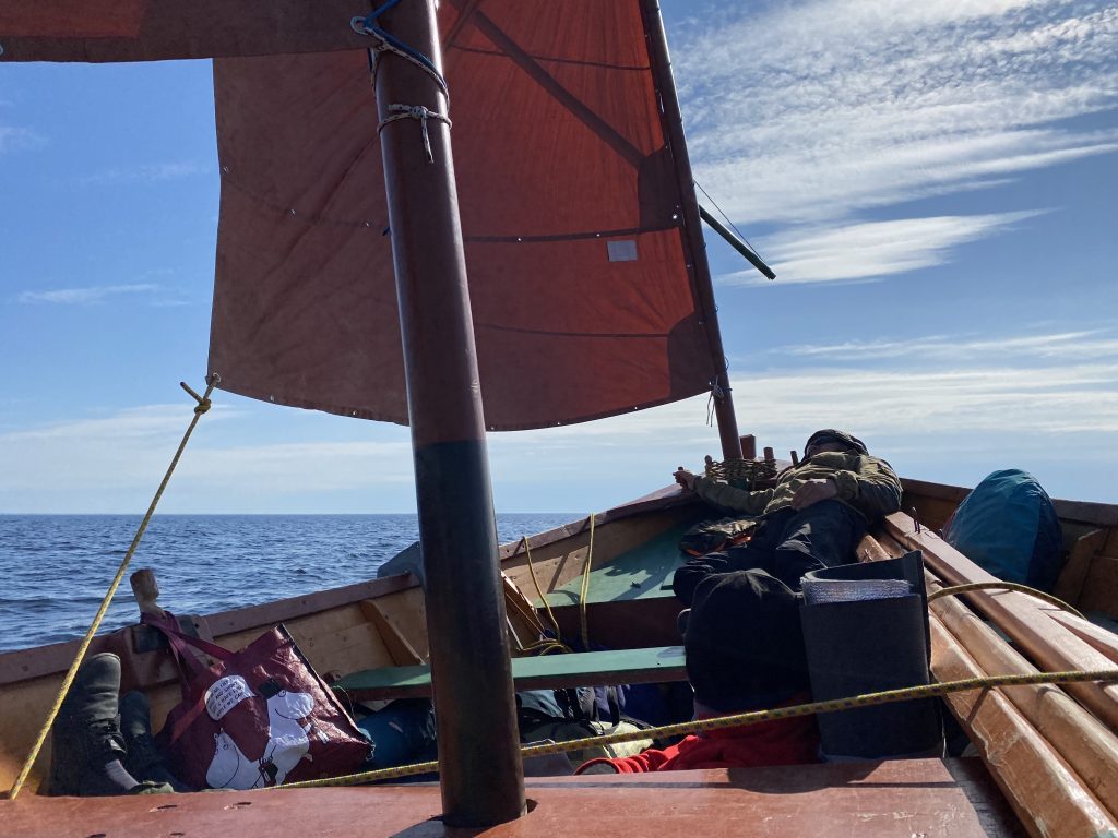 1050, поставили паруса. Скорость карбаса до 7,3 узлов.
