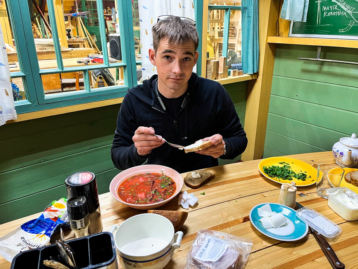 Приехал Ваня Горбунов, взялся починять «Вашку» и есть борщ.
