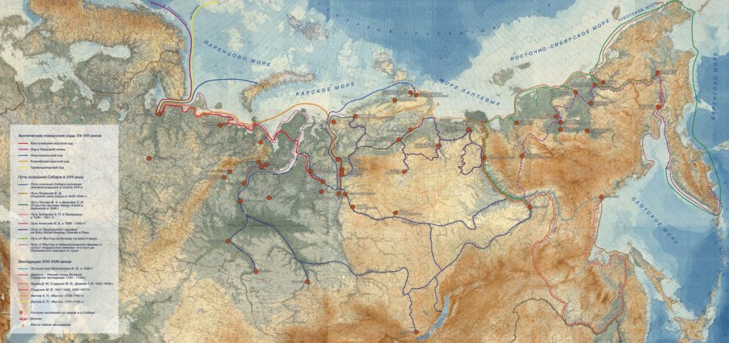 В середине XVI — первой половине XVII в. состоялась целая серия экспедиций, организованных голландскими и английскими купами с целью «открыть» Северо-Восточный проход в Индию и в Китай. Из них самые значимые: плавание Ричарда Ченслера в 1553-1554 гг. и экспедиции Виллема Баренца 1594-1597 гг.). Выйти северным путем в Тихий океан не смог ни один европейских капитан XVI-XVII вв. В то же время западноевропейские путешественники отмечали, что русские на своих судах караванами уходили на восток, оставляя позади европейских негоциантов. Русские первопроходцы поэтапно прошли весь Северный морской путь, и уже в середине XVII в. вышли в Тихий океан (Охотское – «Ламское» море). Такое продвижение было возможно благодаря поморским технологиям судостроения и мореплавания.