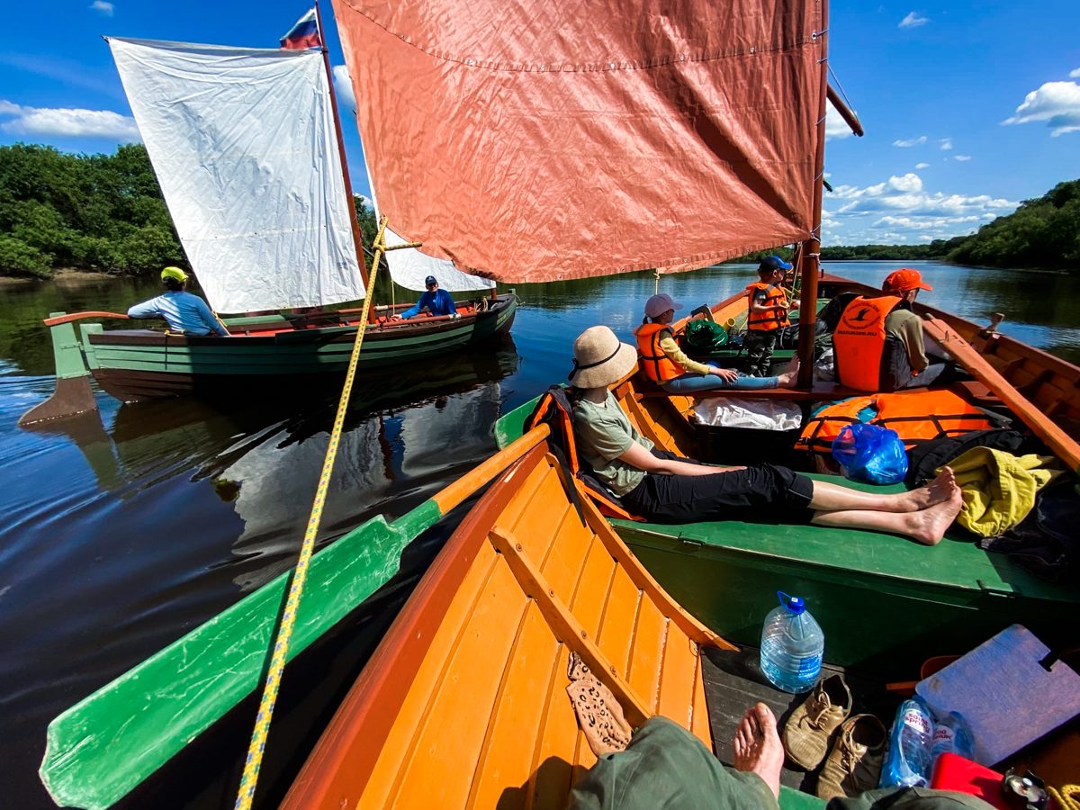 А наш Женя с флотилией карбасов вышел из Вологды в Тотьму и шлёт вот такие фотографии: