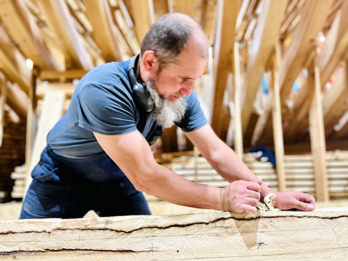 Саша Антонов пошёл выбирать паз в закладке (приговаривая при этом: «Топором, всё это делается топором, а не той хренью, которая у них в руках»).