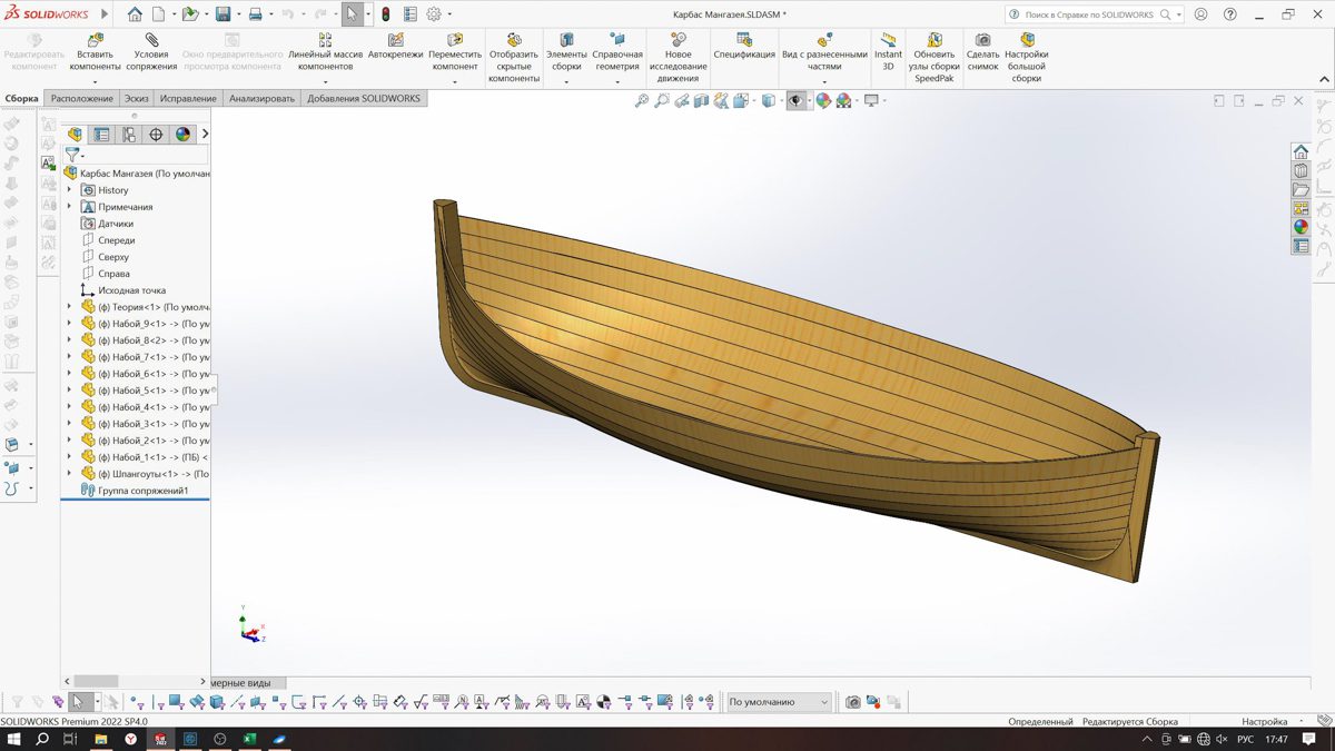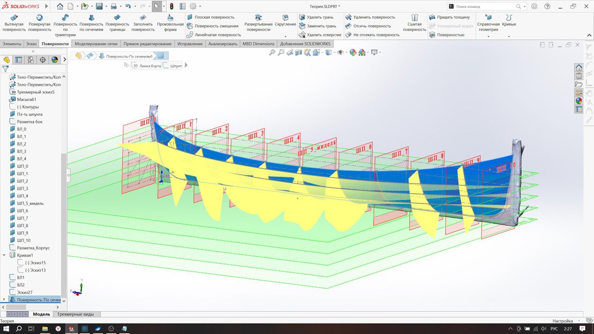 Теперь Миша сделал разбивку плаза практических шпангоутов мангазейского карбаса в программе Solid Works. Всё по древним технологиям!