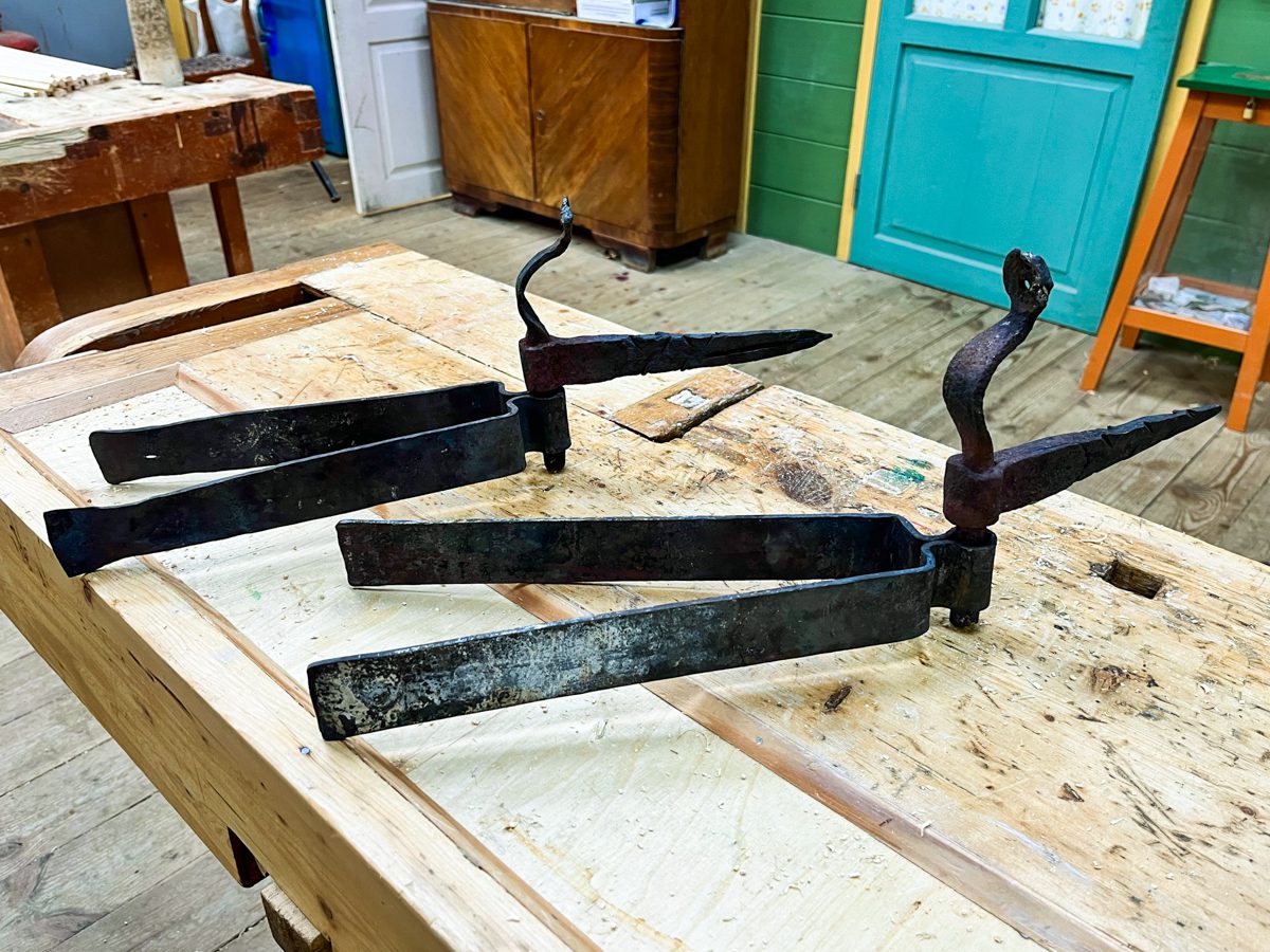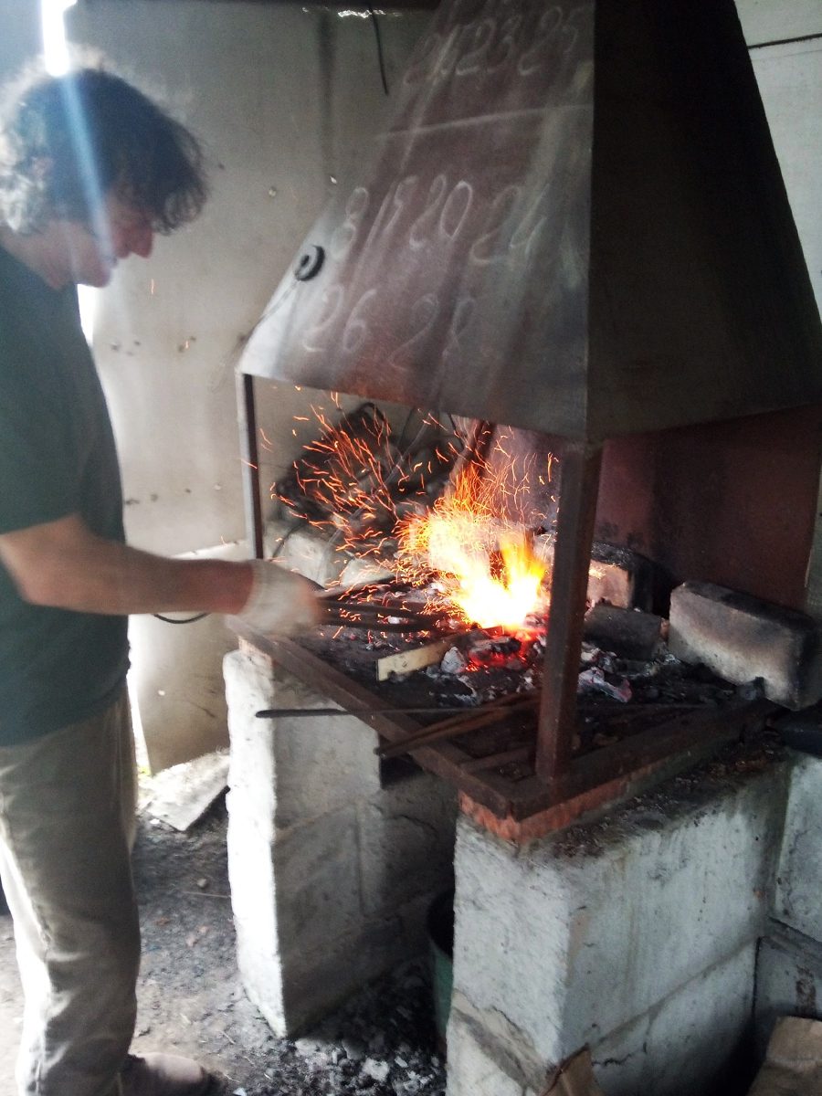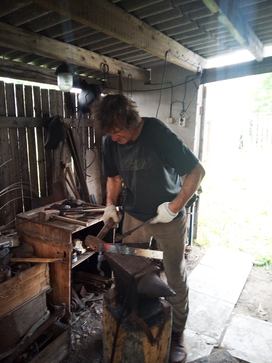 Женя сковал навесы для руля нашего карбаса в кузнице Игоря Козьмина.