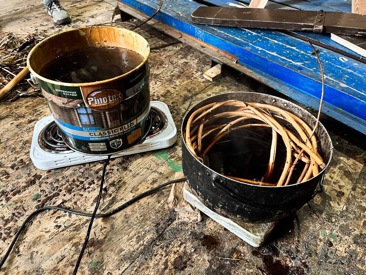 Ваня с Олей заготавливают вицу. Варят её, как какое-то зелье.