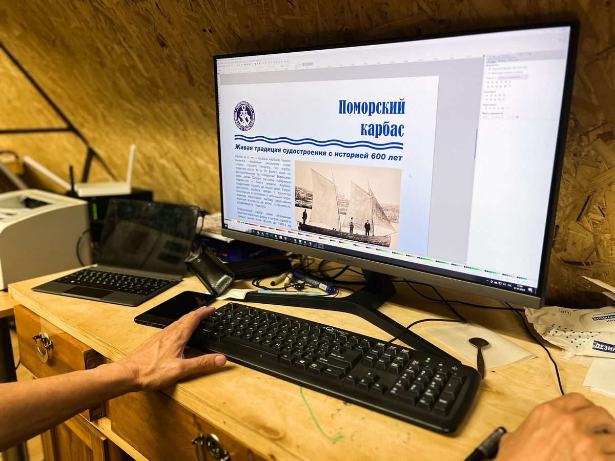 Приехал Виталий Дробиленко, делает стенды о поморском судостроении для нашего проекта «Заветный флот».