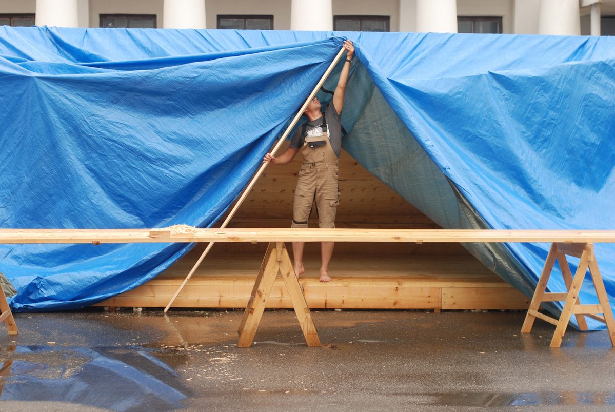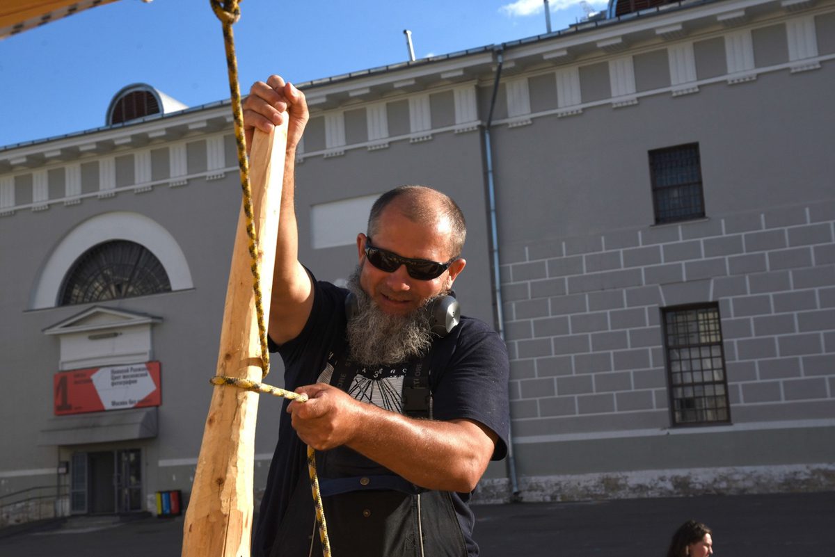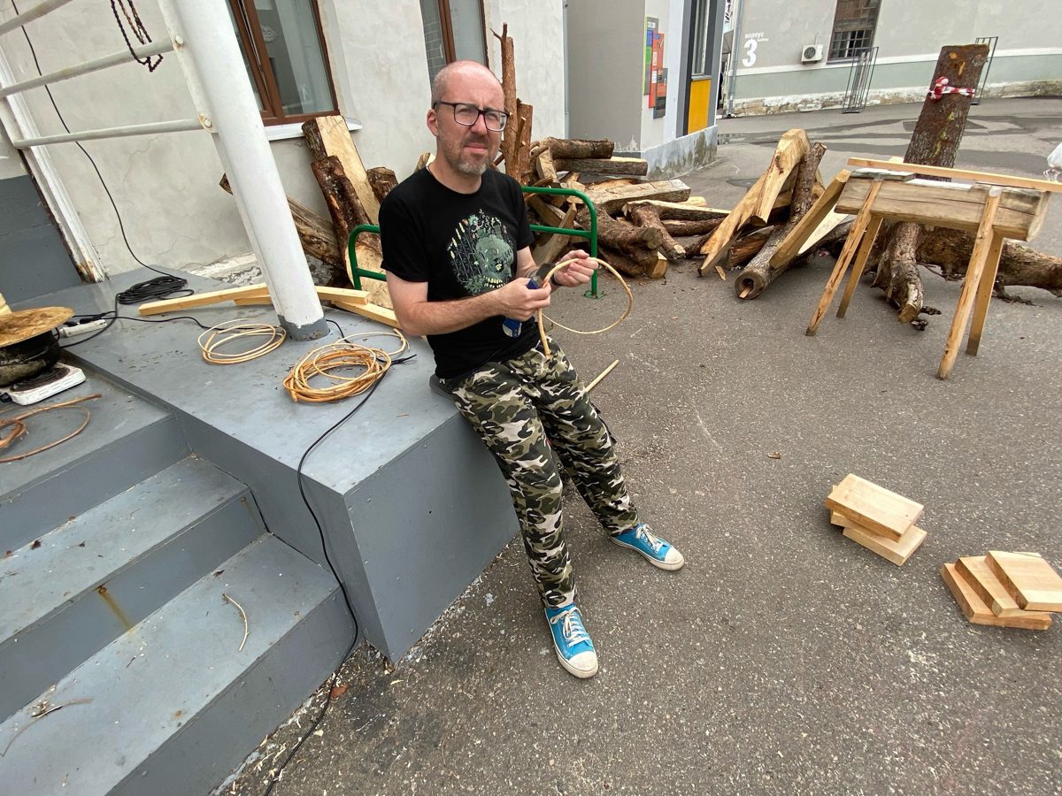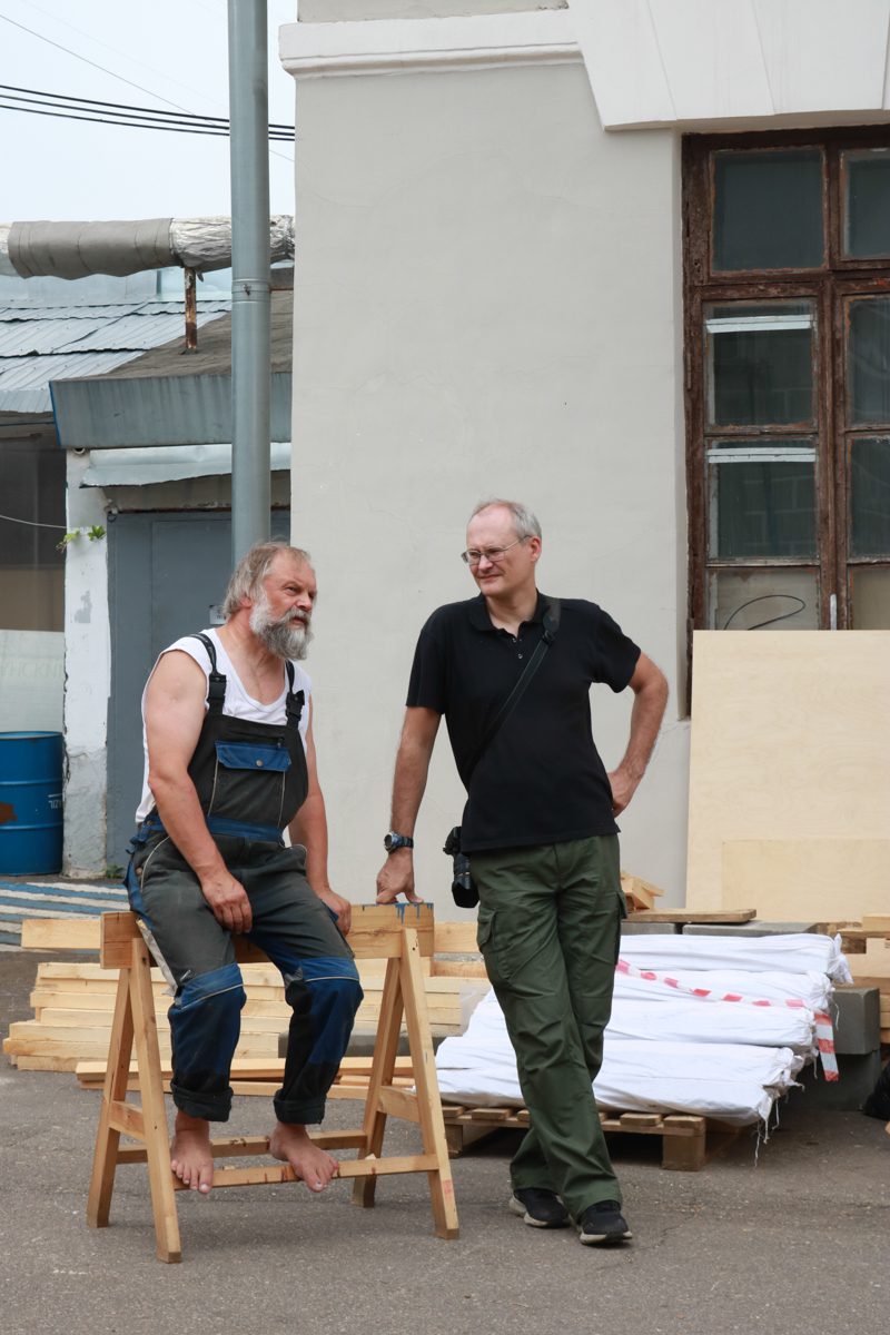 На нашу волонтерскую стройку приехал Коля Виноградов из Иваново. Поставили на подготовку веток для вицы — это всегдашний первый шаг.