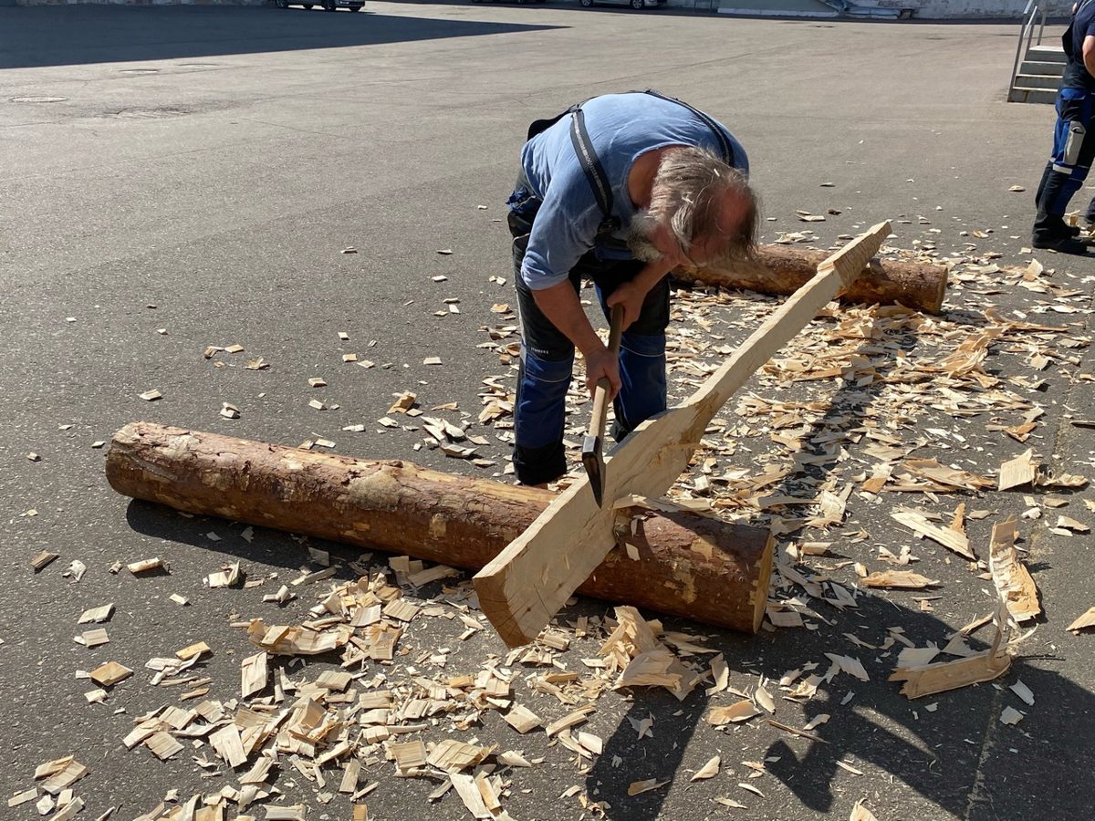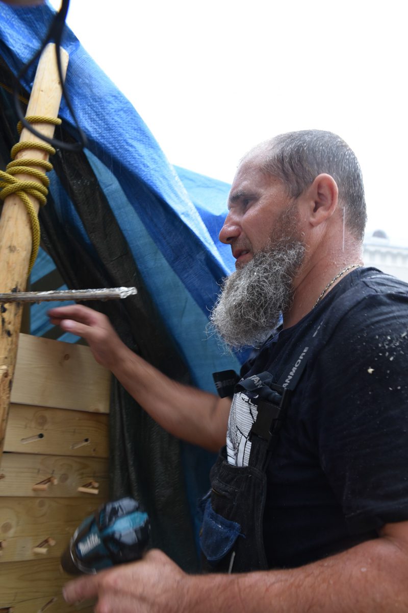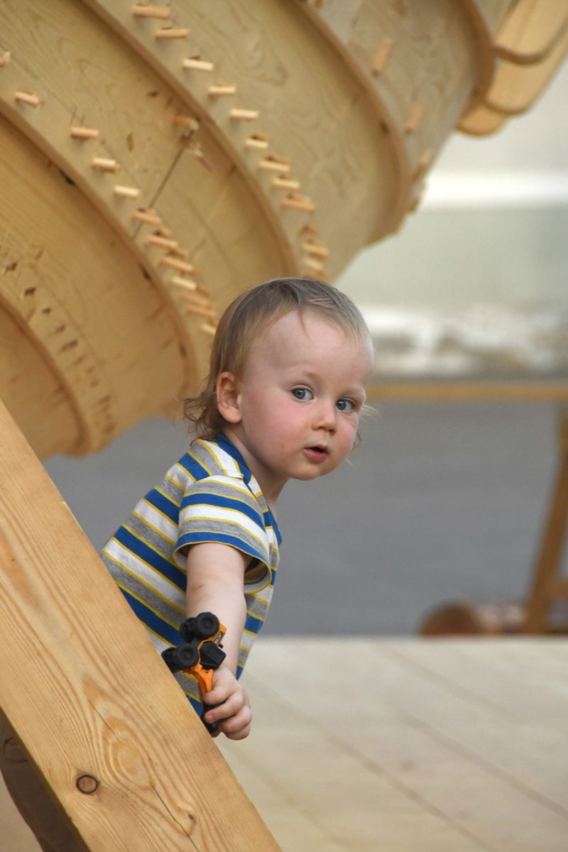 Сегодня было много гостей, был концерт с баяном, были экскурсии, а главное, много работали – строили карбас. На левом борту установили уже девятый предпоследний набой.