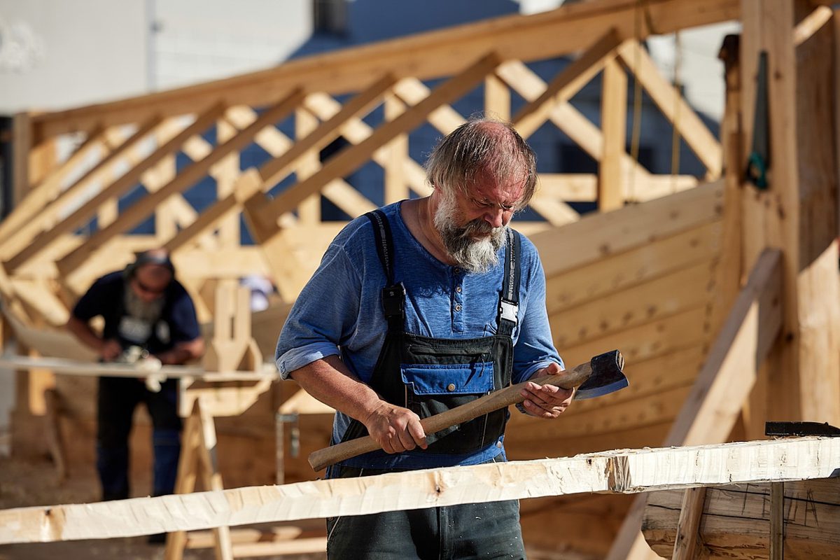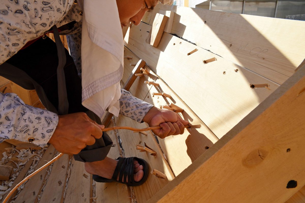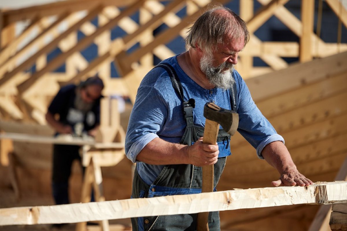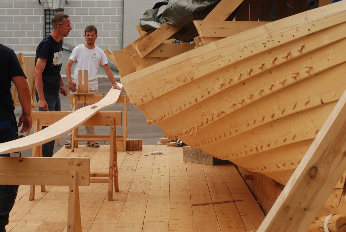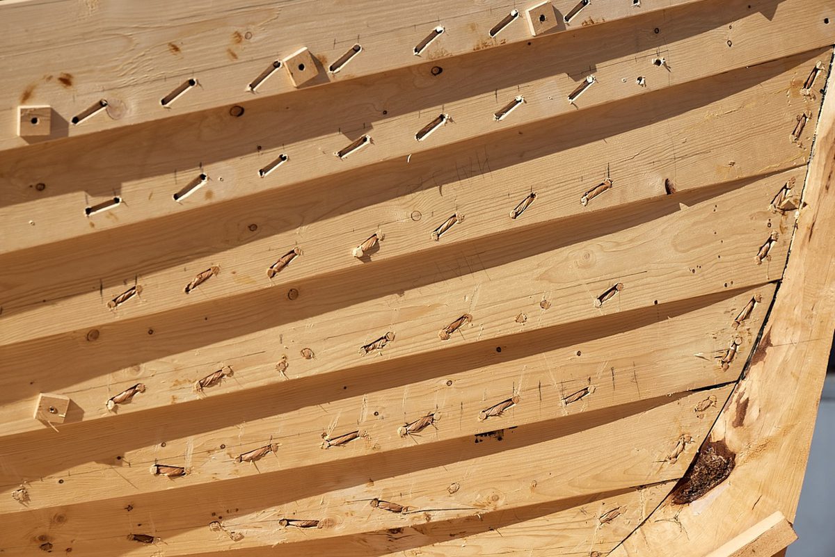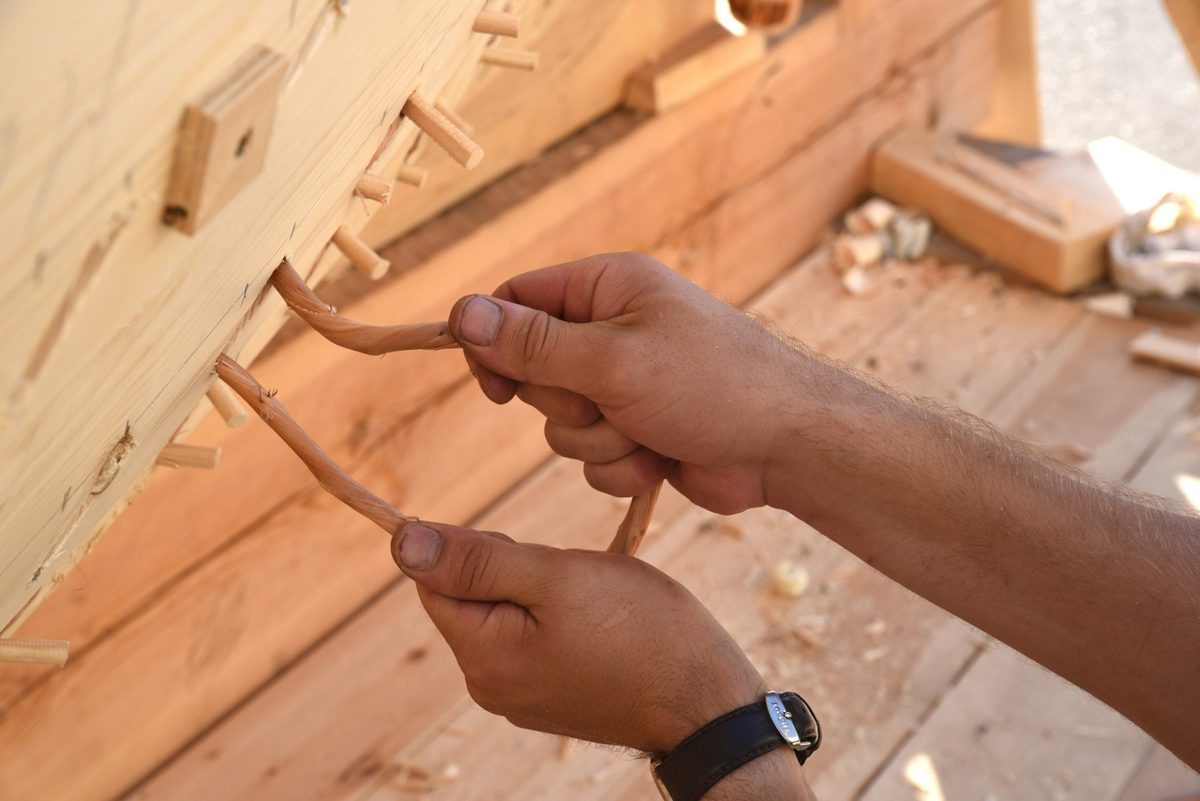 Подгоняли девятый набой, шили вицей, делали порубень, весла, кокорные заготовки для шпангоутов.