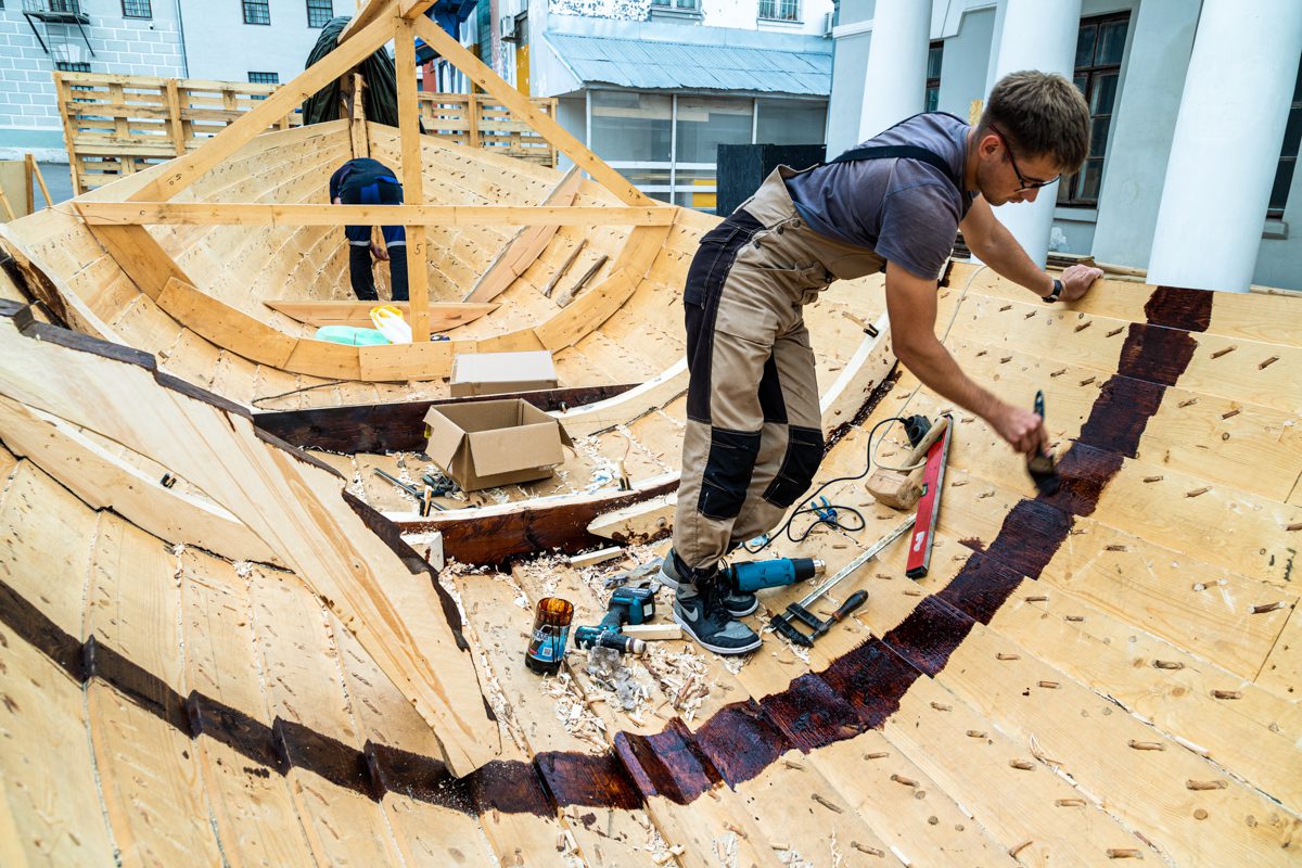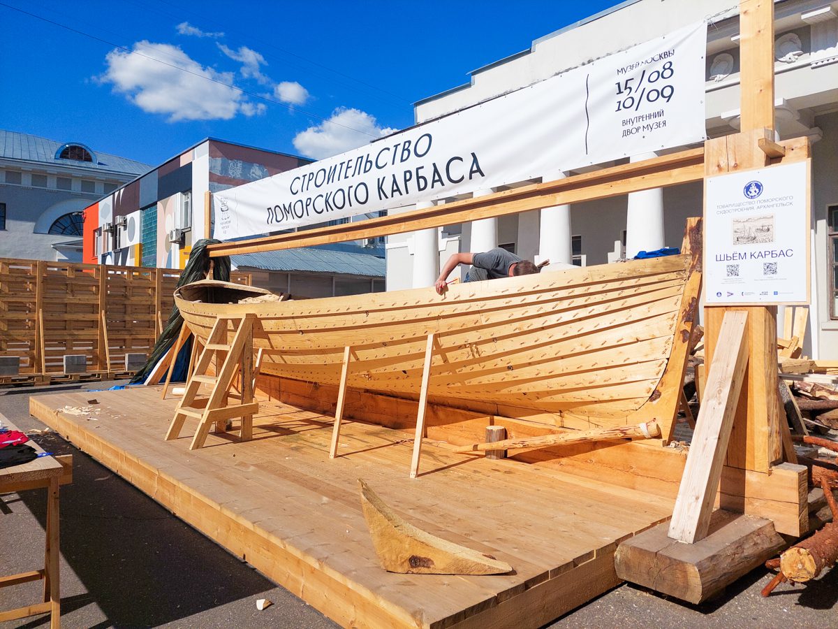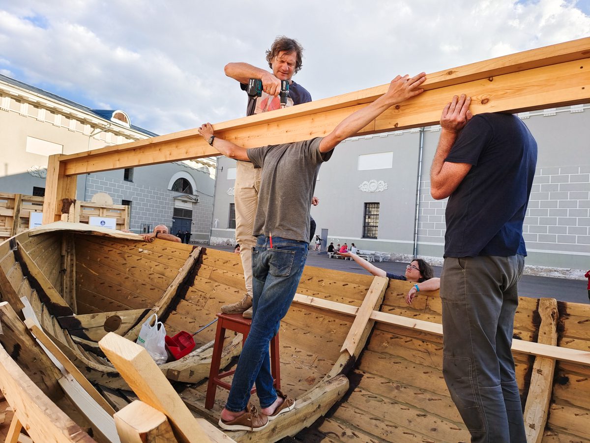 Грот, фок, запах дёгтя и имя для лодки. Пятая неделя московской карбасной стройки – в дневнике на нашем сайте.