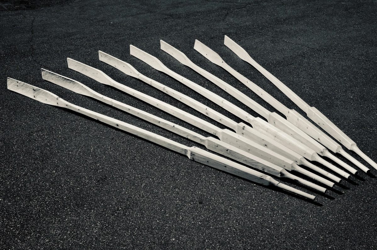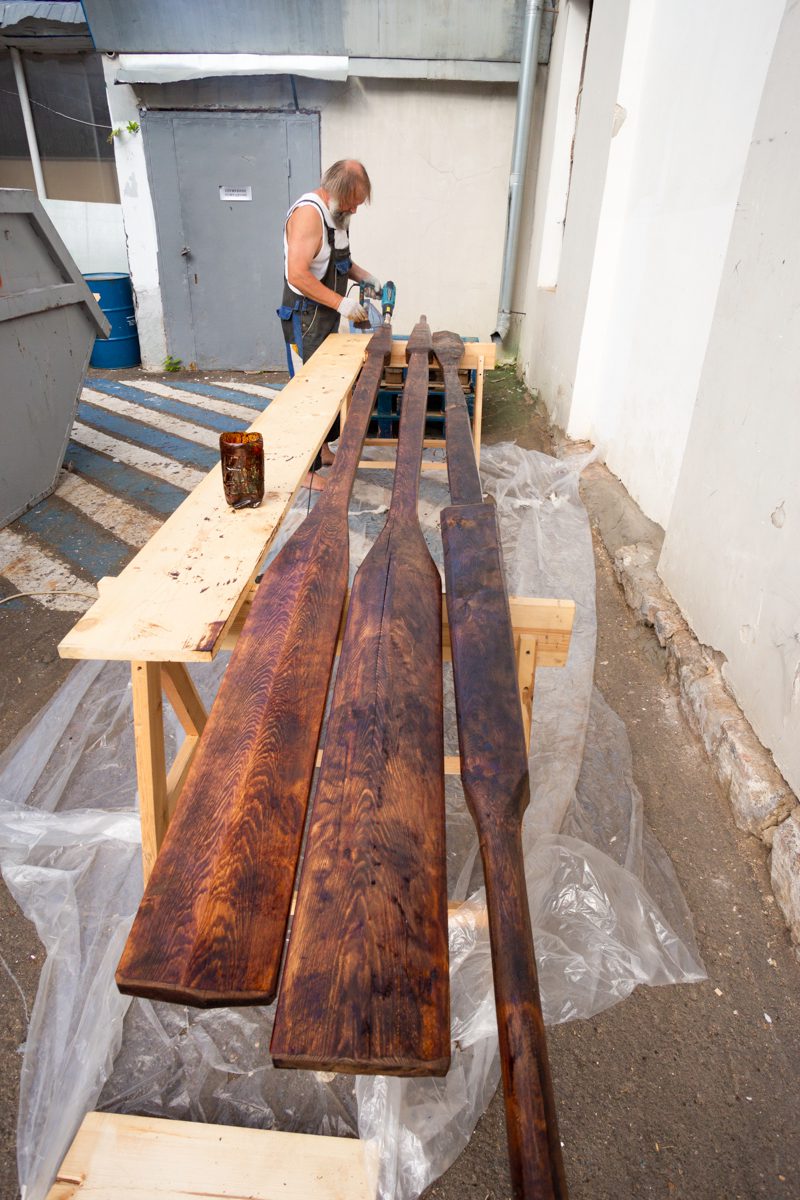 Саша Антонов развлекается с веслами. Смолит их, раскладывает веером и прочее.