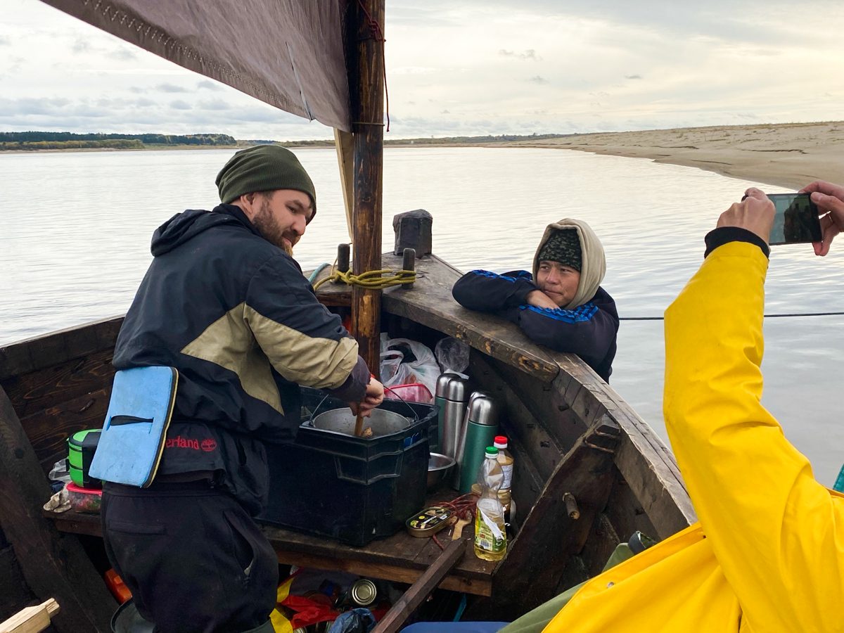 0930, 480 км. На карбасе кроме команды постоянно работает 4 оператора. Ох, что же они наснимают, интересно. Говорят: «Снимаем полный метр».