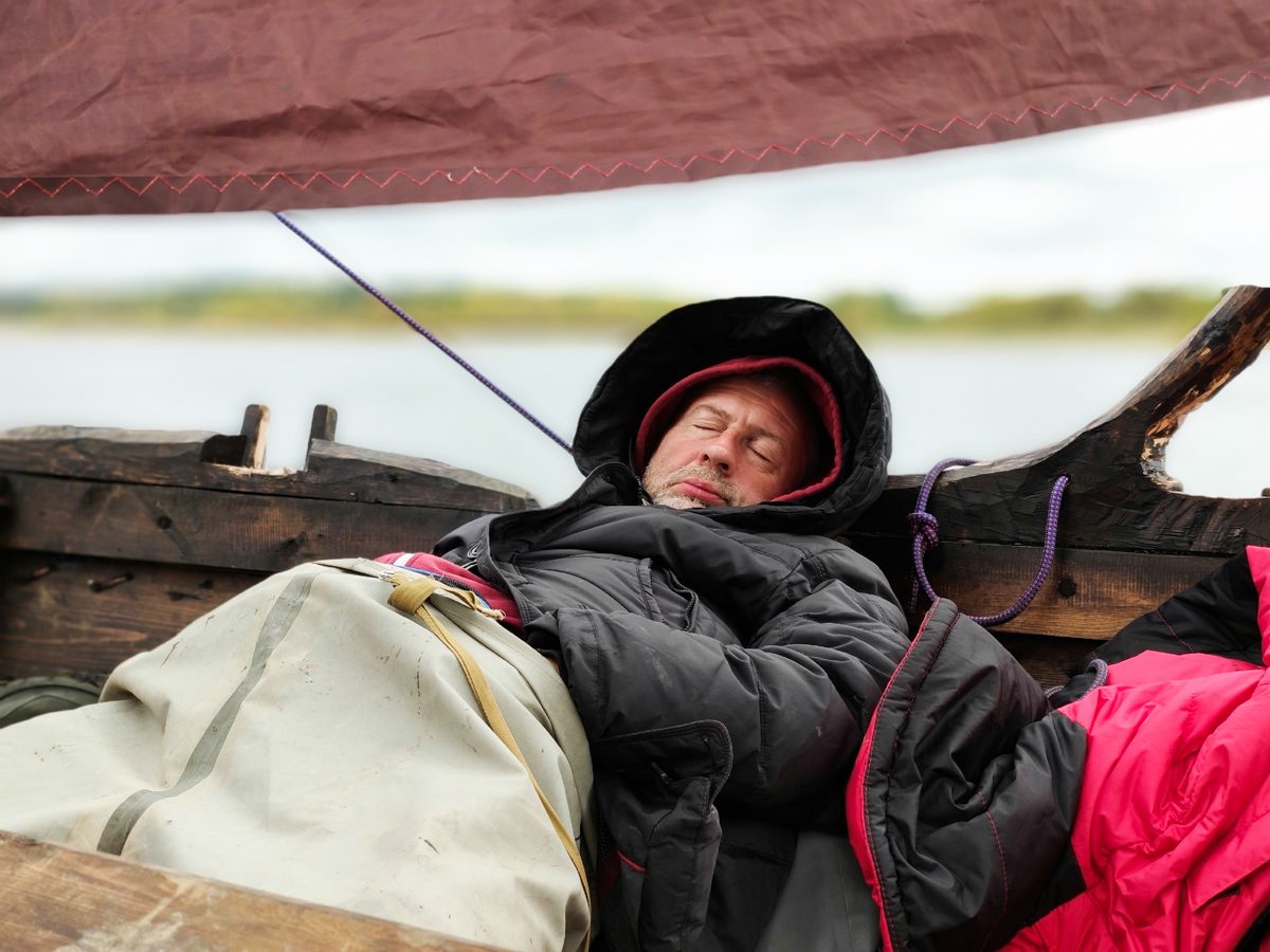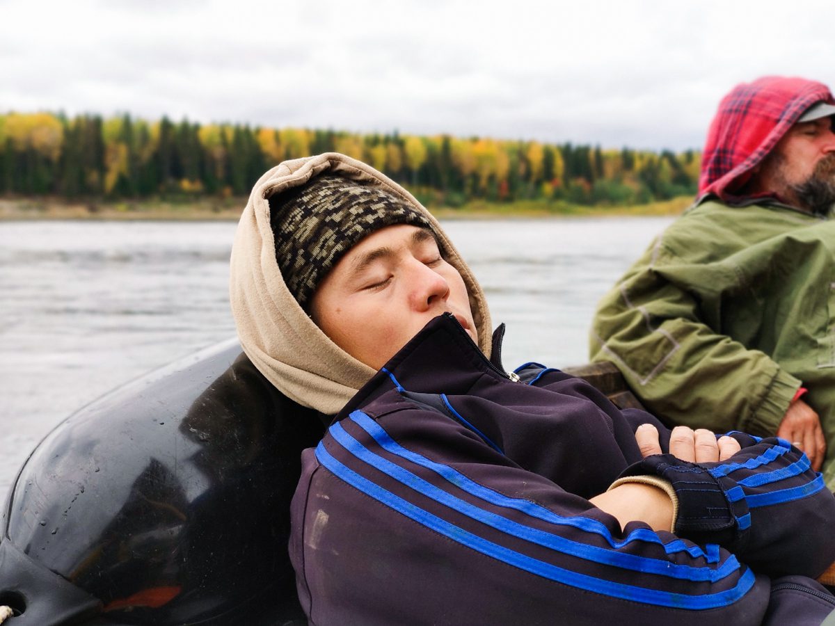 0500, проснулся на острове Лаптя, выползаю на улицу, а здесь ребята из кино устроили засаду и снимают, как мы просыпаемся.