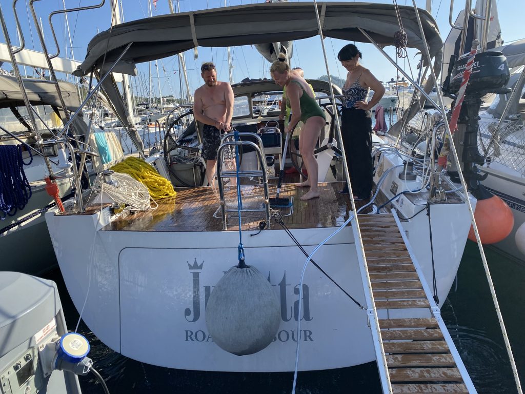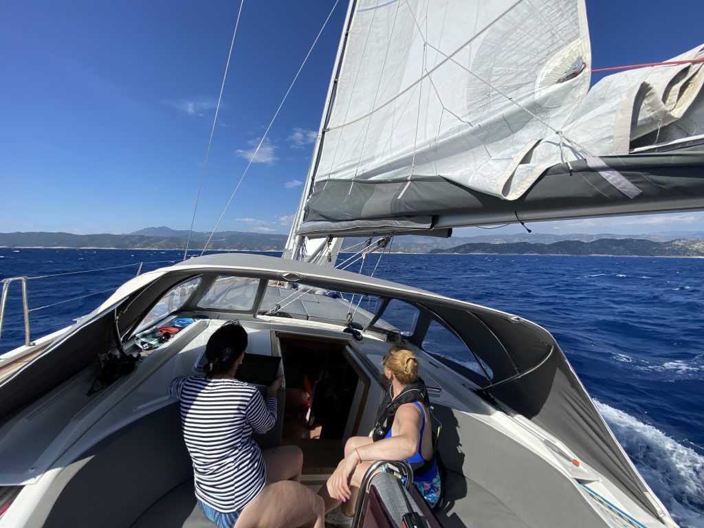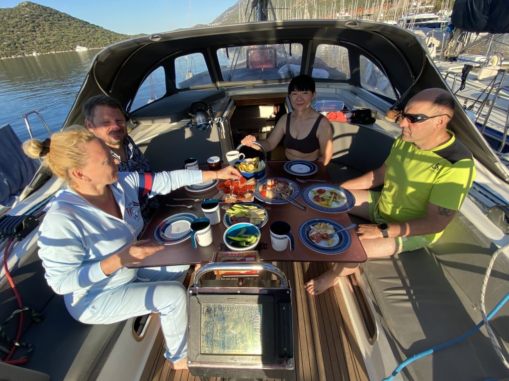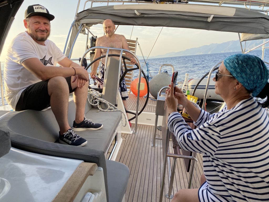 На борту «Джульетты» экипаж Дмитрий и Татьяна Максимовы, Игорь и Любовь Белокобыльские, Евгений Шкаруба. После долгого перерыва мы собрались проведать «Джульетту», позаниматься парусами, учиться и сдавать экзамены на яхтенных капитанов в Турции.