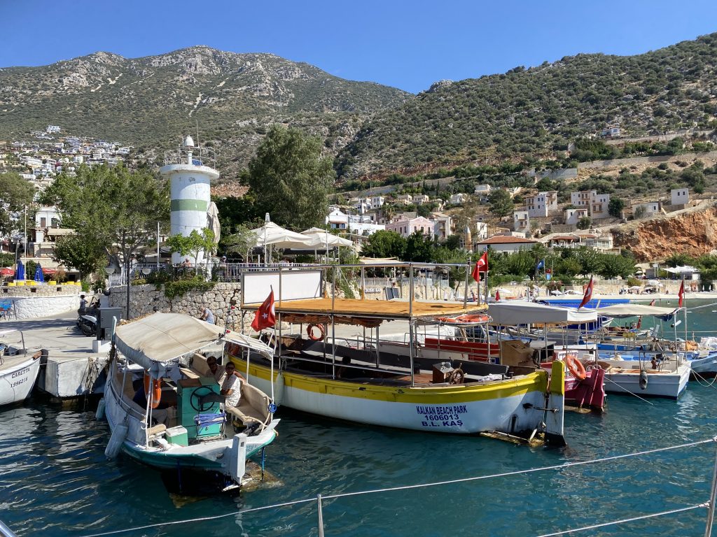 1240, зашли в гавань Калкана, крутанулись и решили оставить это место на потом. Сейчас идем заниматься и купаться на якорную стоянку неподалеку.