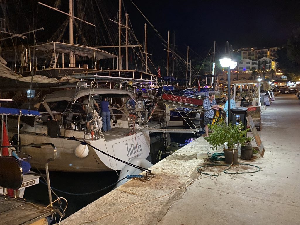 Весь день шли в Мармарис. Сначала на моторе, потом под парусами. Безрезультатно ловили рыбу, жарились на солнце и, наконец, пришли в Нэтсел Марину. Гуляли по городу, наблюдали, как живет этот чартерный муравейник. Из грустного: из Нэтсел Марины ушли интересные кругосветные лодочки, которых еще недавно здесь было так много.
