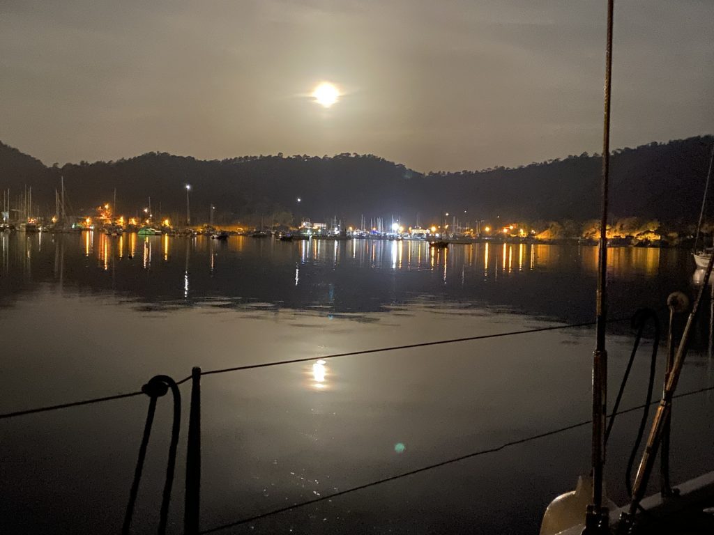 2300, пришли в городскую Марину Гечика в полной темноте. Вова сегодня капитан, зашвартовал «Джульетту».