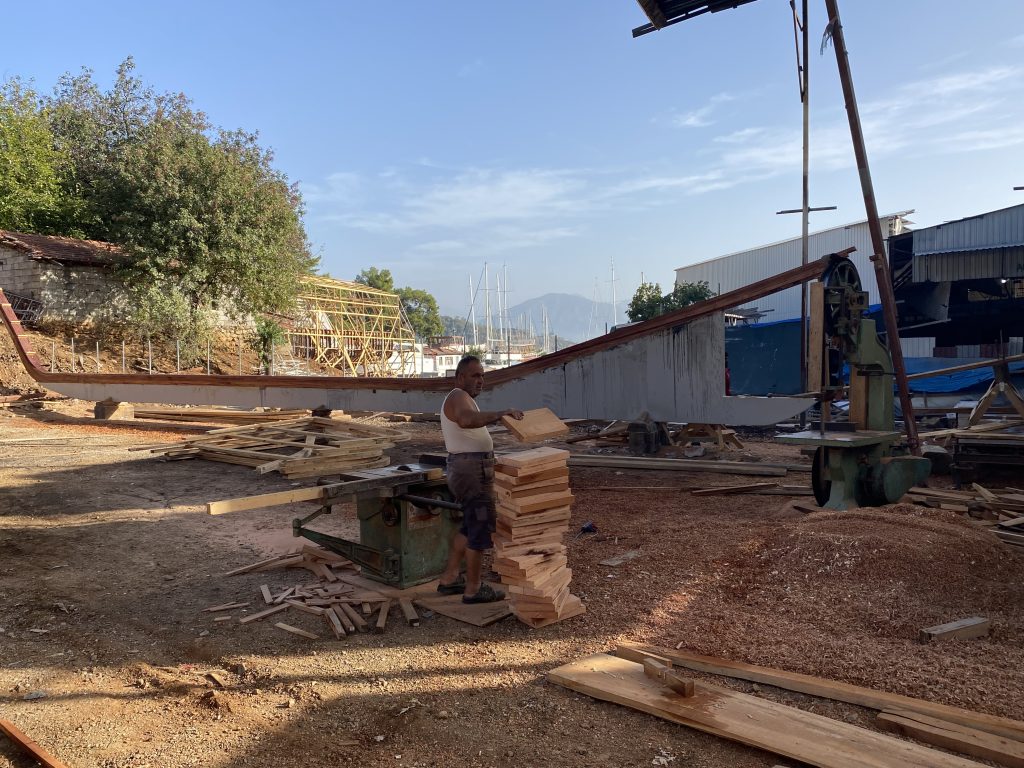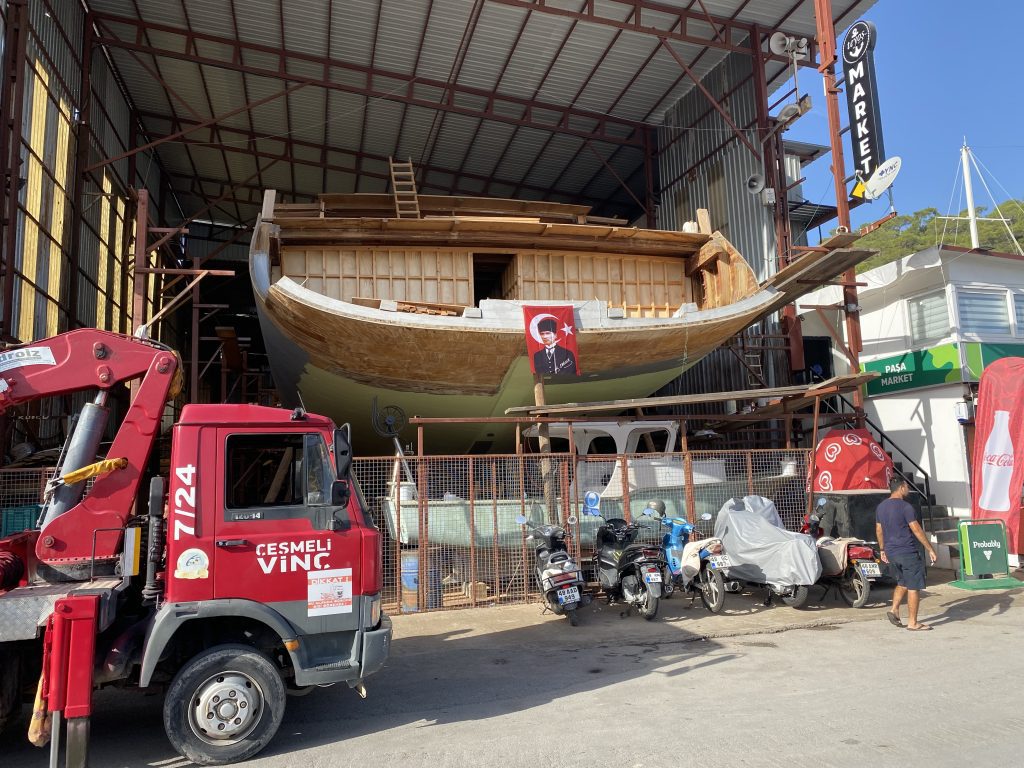 Были на прекрасной верфи Фитхие. Изучая морское дело, практикуя умение ходить на парусной яхте просто невозможно не посетить это место! Здесь строят огромные гулеты и небольшие деревянные рыбацкие лодки. Можно увидеть, потрогать все несущие элементы корпуса, разобраться в шпангоутах, сптингерах, рейзенкилях и флорах. Среди душного пластикового яхтинга – великолепное занятие по устройству деревянного судна и красоте конструкции деревянной яхты.