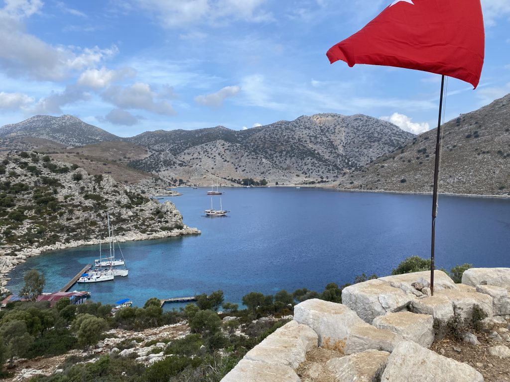Заходим в бухту Бузбурума. Здесь есть один удобный островок под флагом. Флаг большой и больше там ничего нет. То, что нам и нужно.