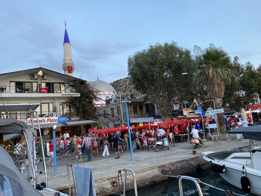 1630, швартуемся в гавани Бузбурума. Прекрасное место. Туристов мало, а турков много. Наблюдаем за местным парадом.