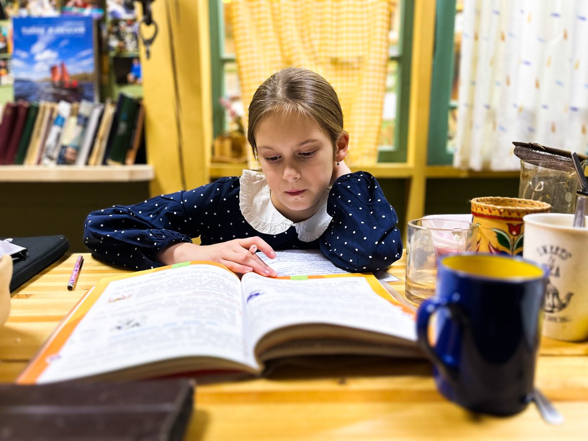 Варя делает уроки.