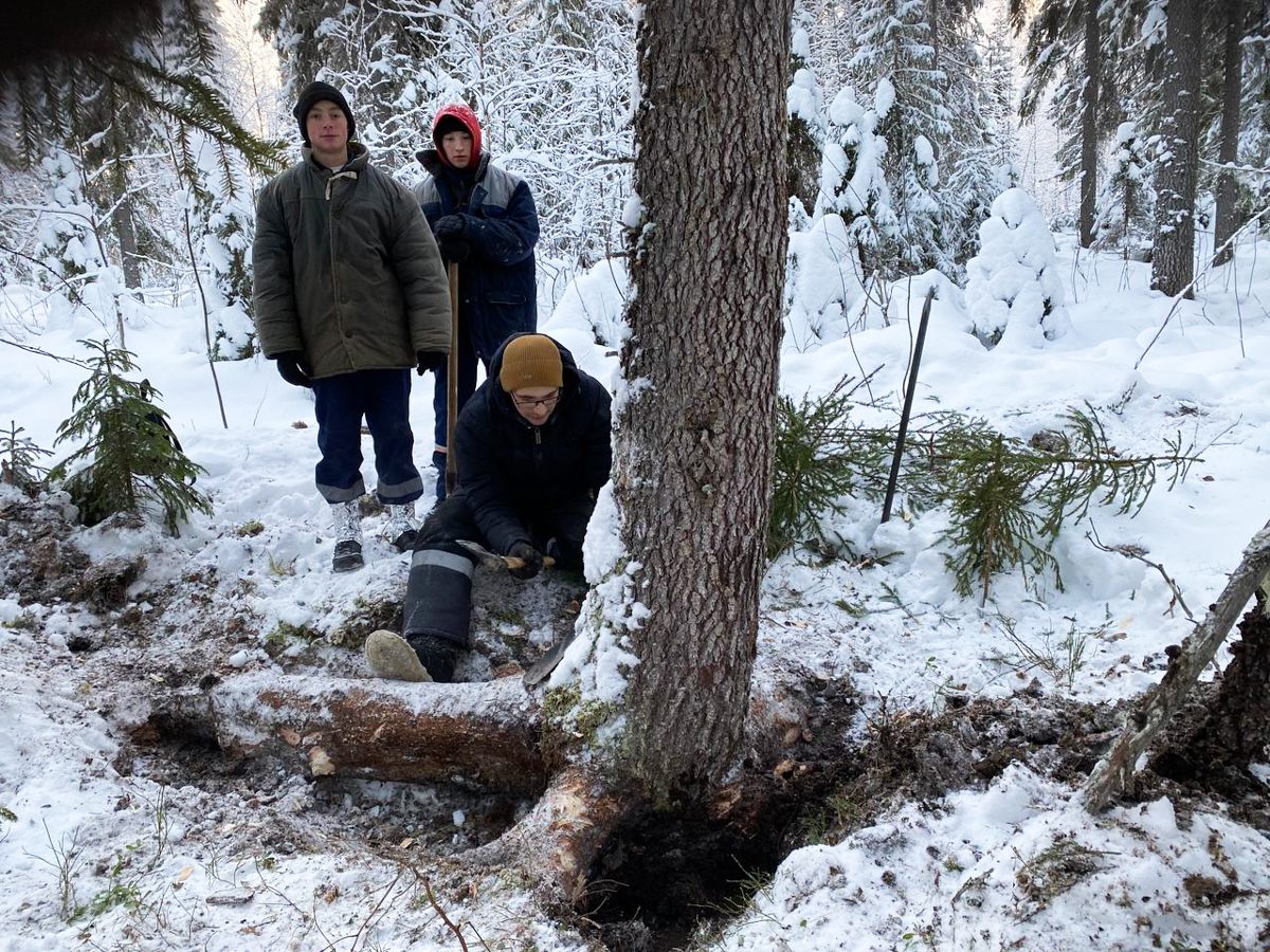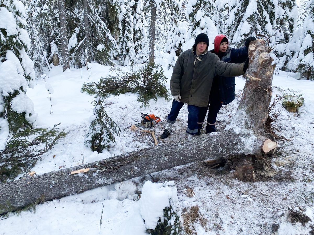 Поехали Женя с Ваней, с собой захватили студентов Никиту и Даню (Саша сказал, повели, как пленных немцев). Приметили себе три кокоры. Одну из них смогли повалить, две другие повисли в воздухе. Теперь нам нужны железные крюки, чтобы уложить их окончательно.