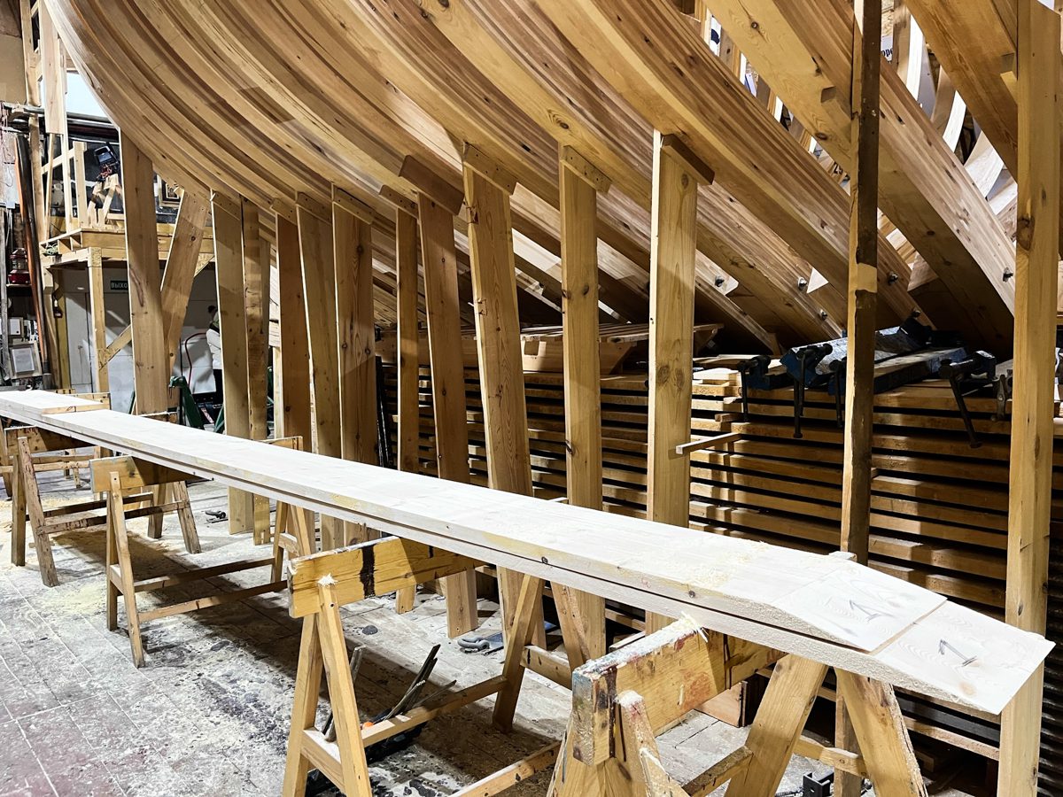 Выровняли и навеки закрепили все ранее установленные шпангоуты шхуны.