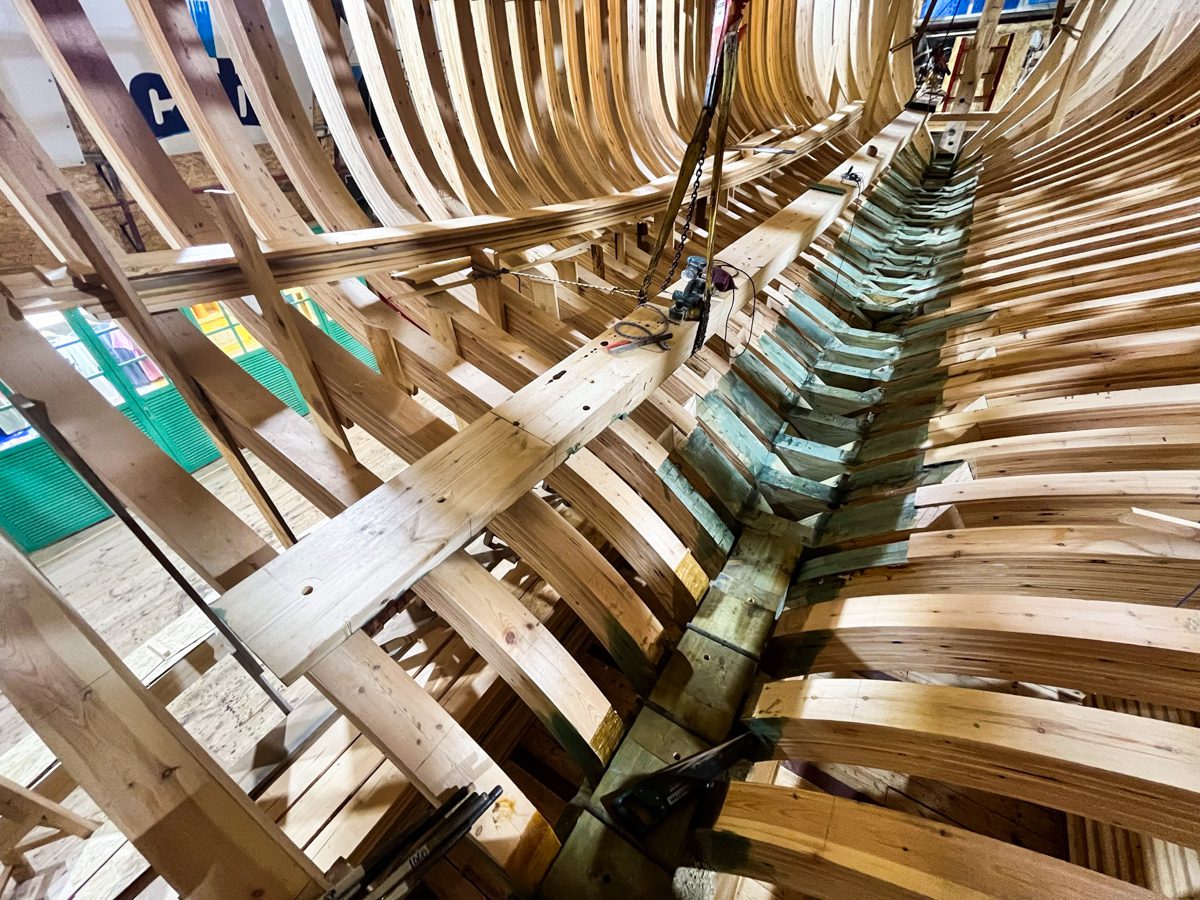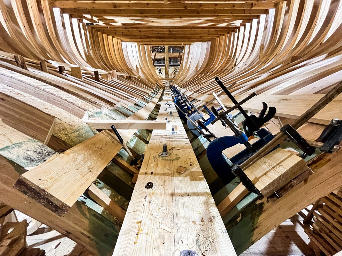 Артём поставил пять из шести лимбербордовых доски и начал готовить место под днищевой стрингер шхуны.