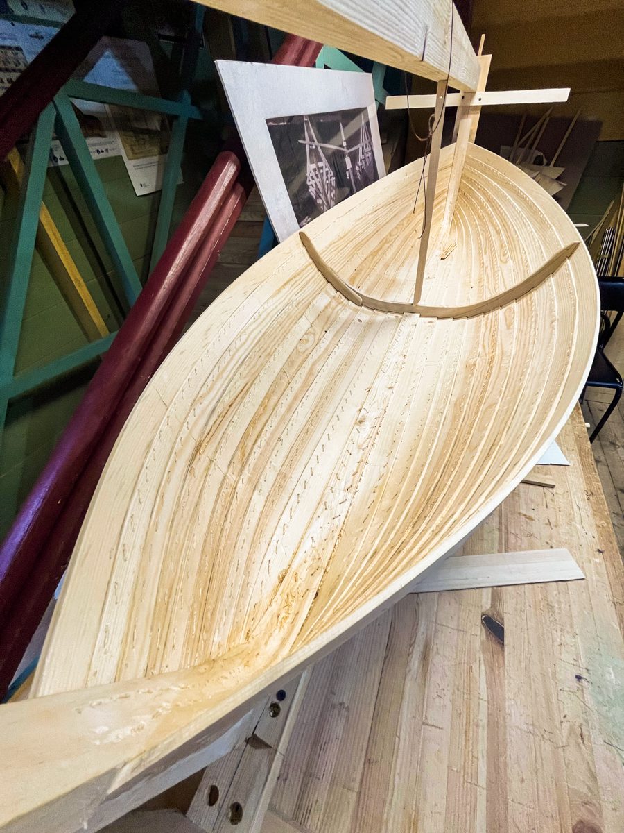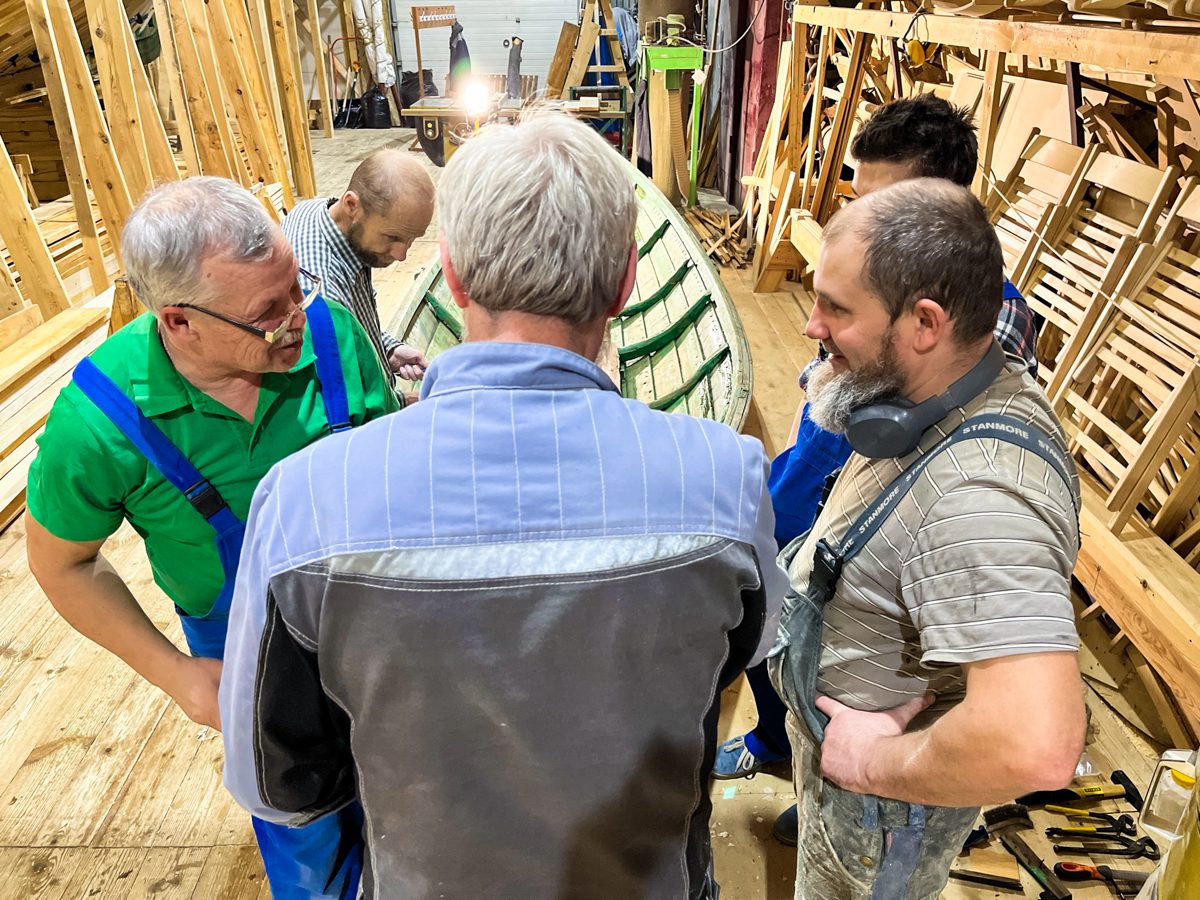 Временами вокруг них собирается небольшая судостроительная толпа. Дело в том, что лодка эта очень веселит наших мастеров своей живостью, аутентичностью и стариной.