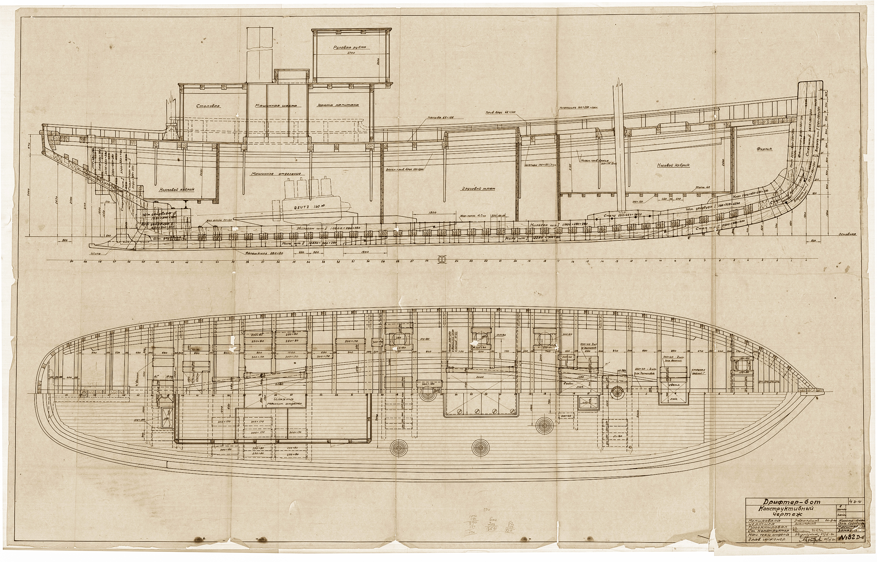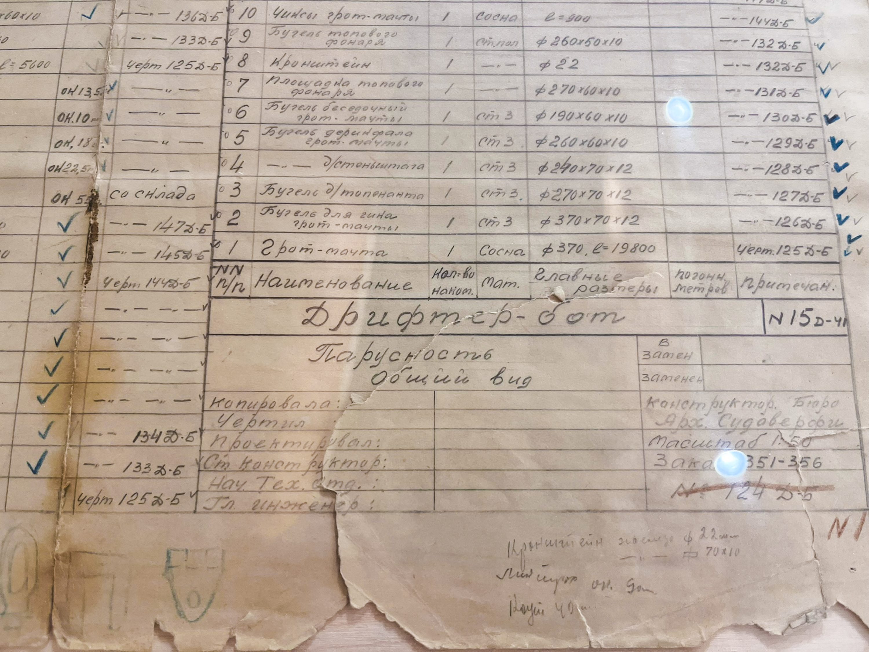 Продолжаем пополнять цифровой архив Соломбальской судоверфи и знакомить наших подписчиков с наиболее занятными чертежами, найденными нами в процессе работы. Сегодня на экранах – чертёж дрифтер-бота, притом не калька и не копия, а его исходная версия, то есть, чертёж, выполненный карандашом на ватмане.