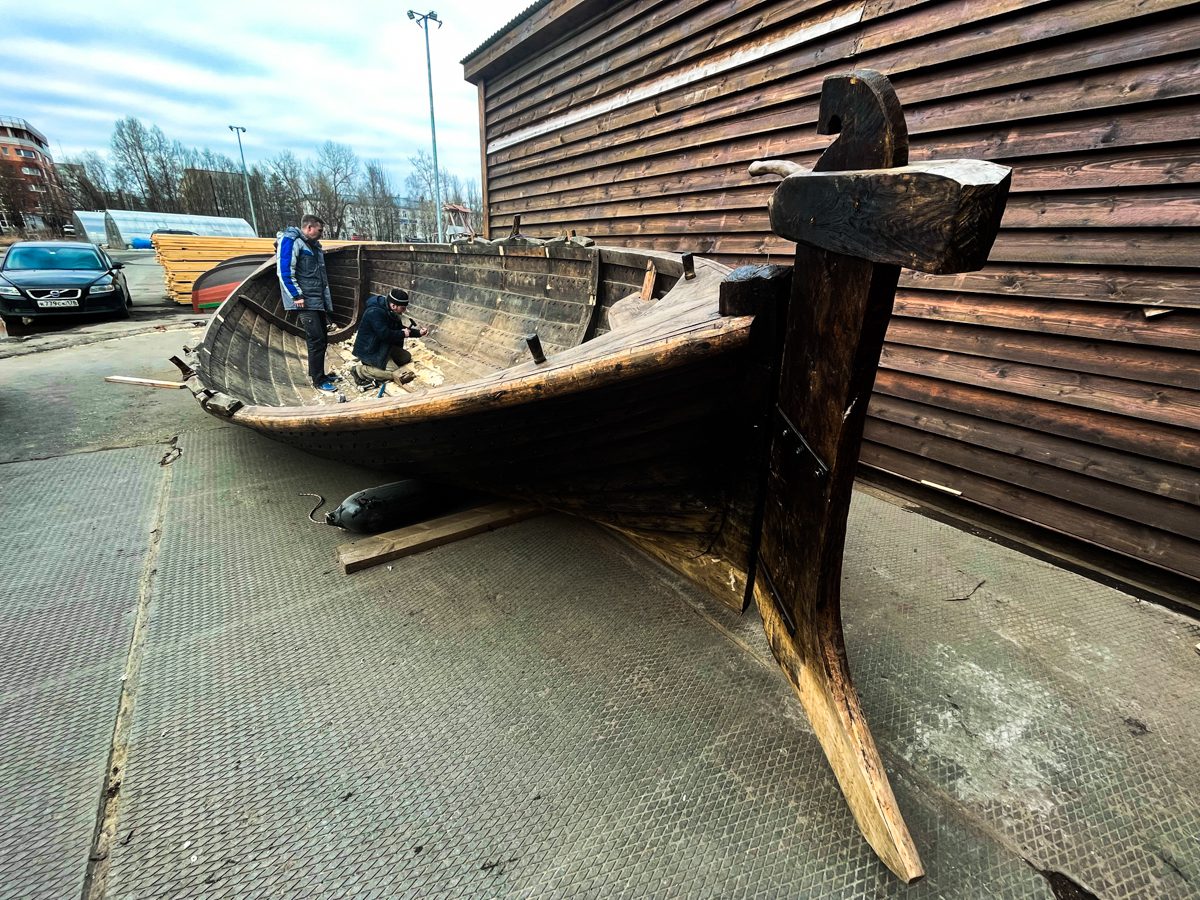 Полным ходом идёт ремонт карбаса «Матера». До экспедиции остаётся всего три недели, за это время нашу исследовательскую лодку-лекторий-музей нужно привести в полный порядок после зимовки и дооснастить к большому и сложному походу.