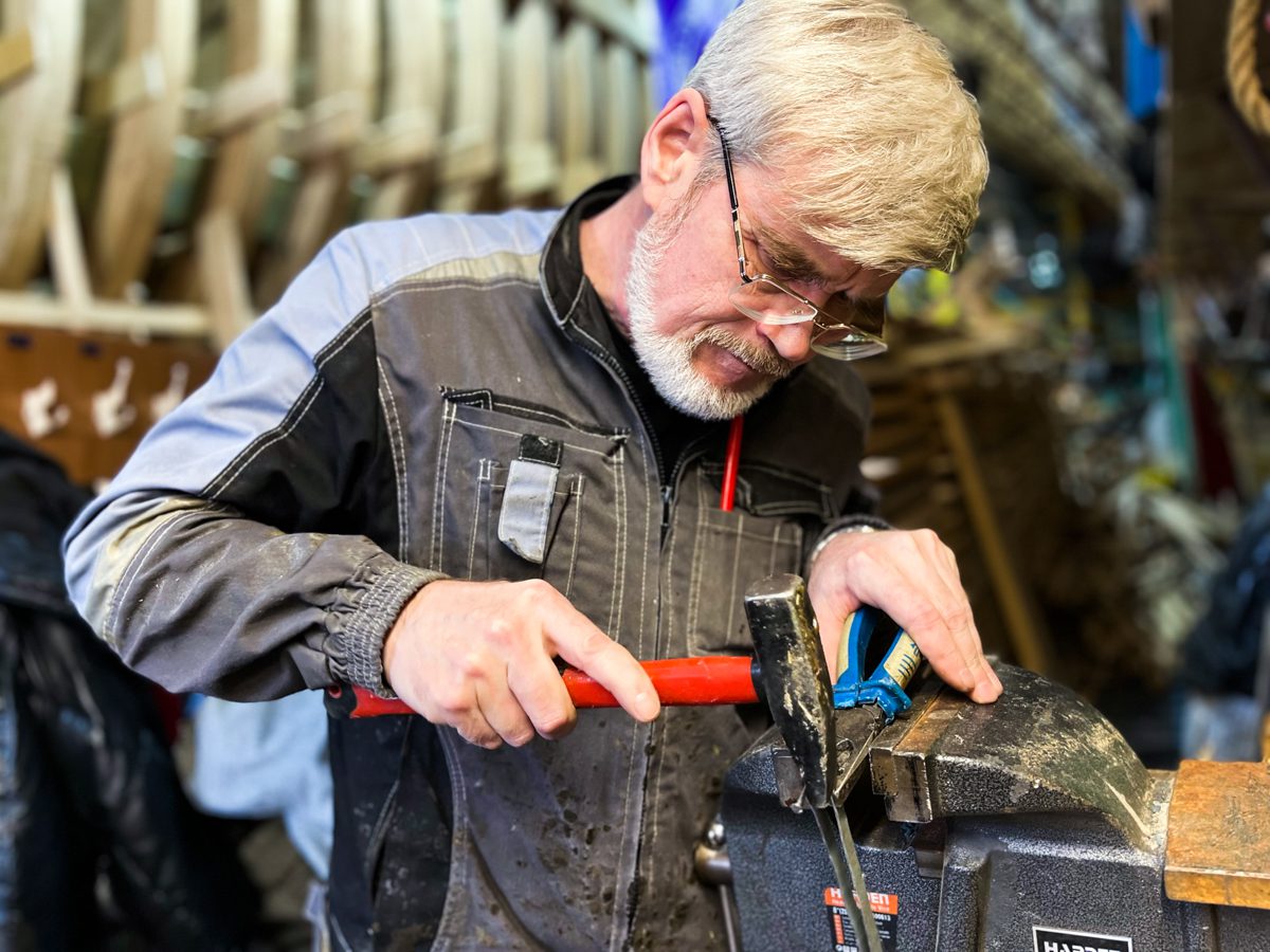 Игорь Козьмин, который, кроме прочего, знаменит своими коваными ножами, взялся за петли и постава для руля макета «Матеры».